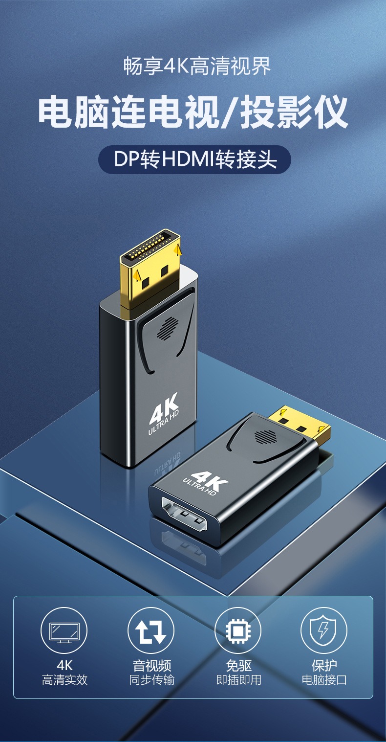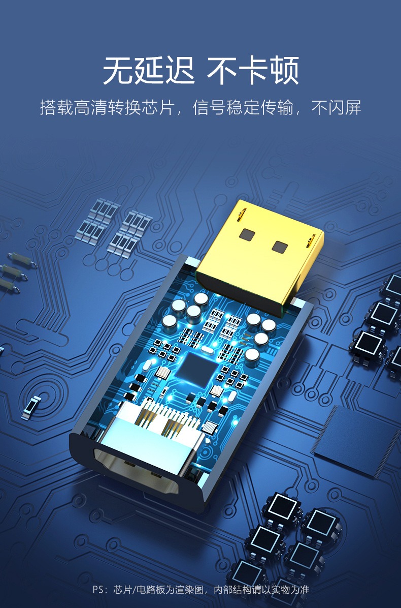 2、支持 4K@30Hz 超高清分辨率输出,兼容 1080P@60Hz 向下适配,画面细节清晰无拖影、无模糊,色彩还原精准,远超普通转接头的画质表现;