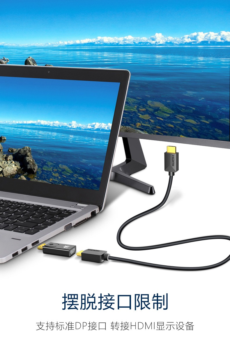 4、无需安装任何软件或驱动程序,插入 DP 接口即可自动识别,新手也能一键连接,办公、投屏零门槛操作。