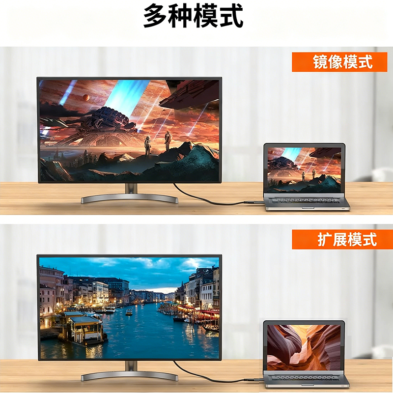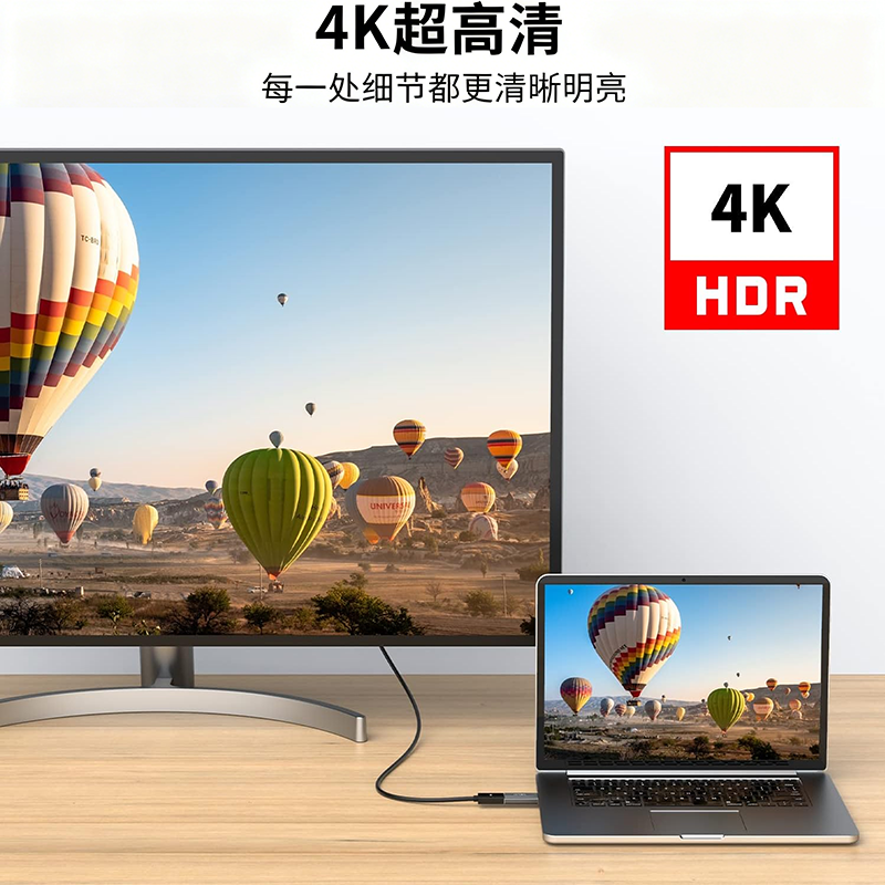 1、4K 高清无损传输:支持 4K@30Hz/1080P@60Hz 分辨率,画面细节清晰无拖影,色彩还原精准,远超普通转接头的画质表现;