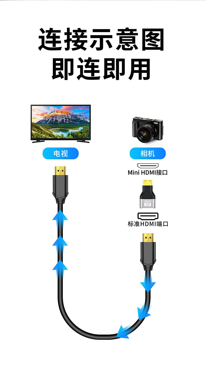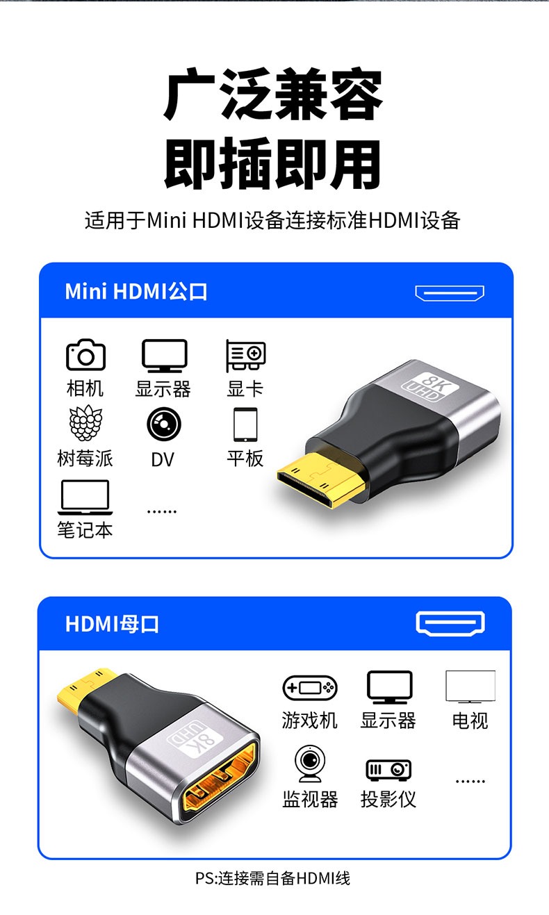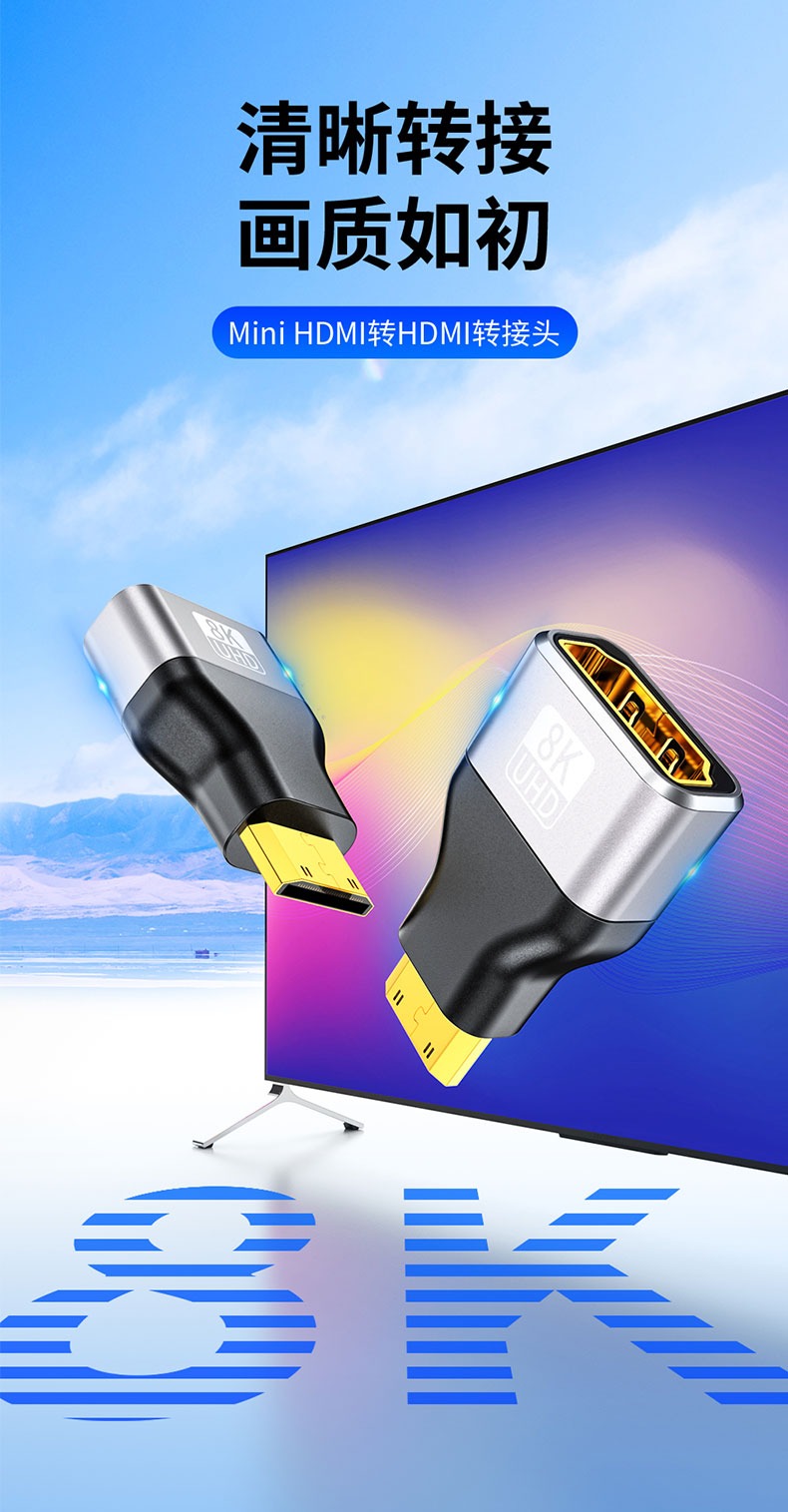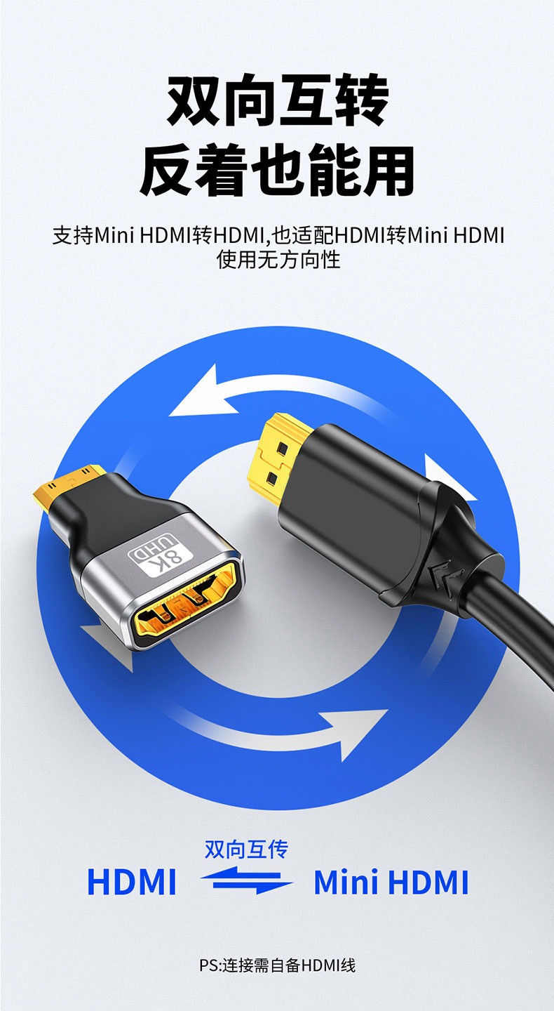 mini HDMI转HDMI 2.1版 8K120HZ高清画质转接线