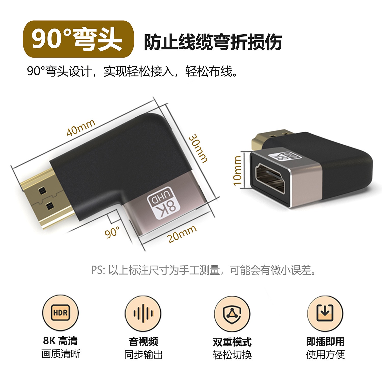 HDMI 公对母 铝壳 8K高清