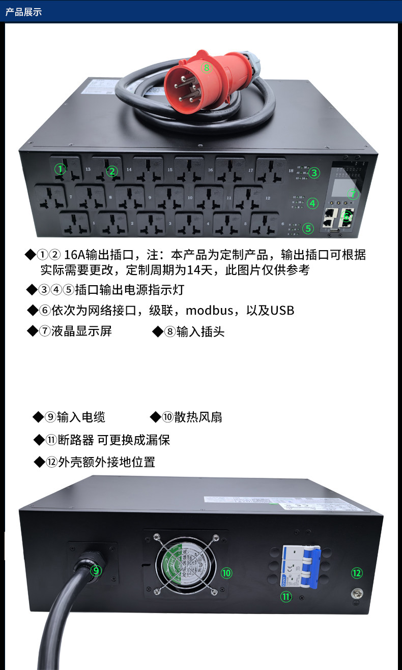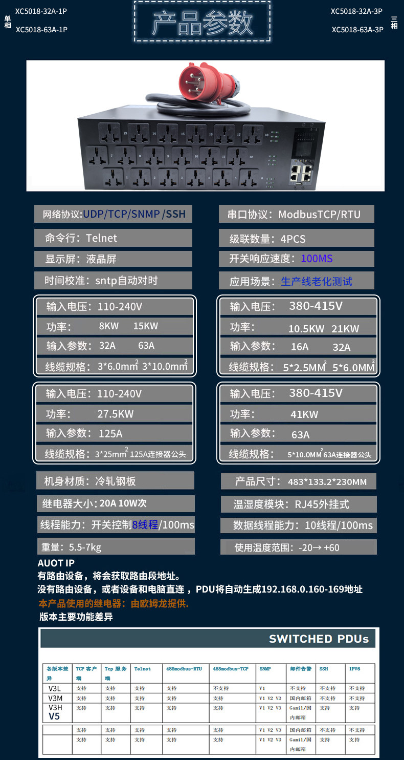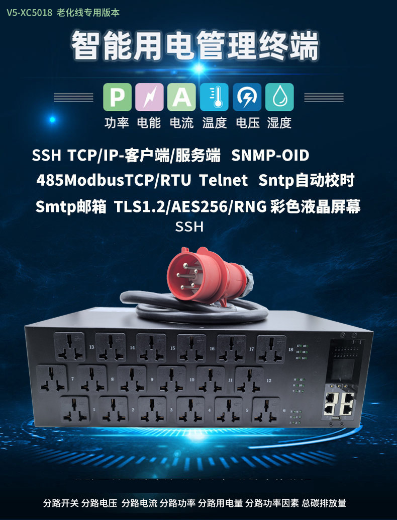 大功率智能PDU插座单相三相63A32A18位C19 Ai服务器老化测试专用