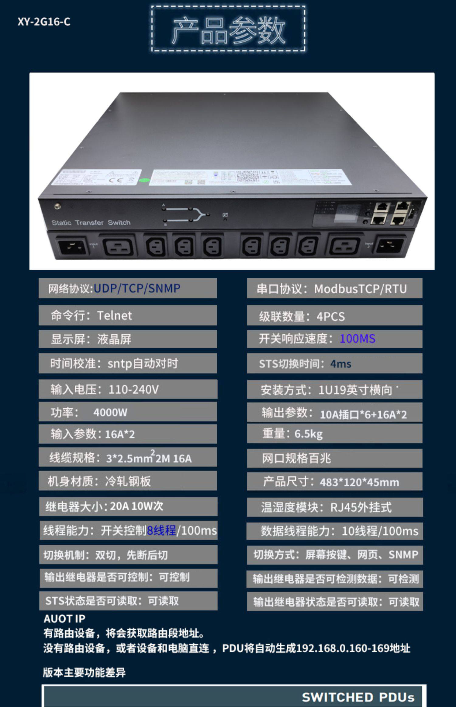 双路输入静态切换开关STS自动电源切换市电UPS智能PDU配电单元
