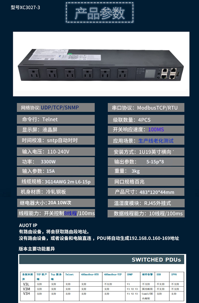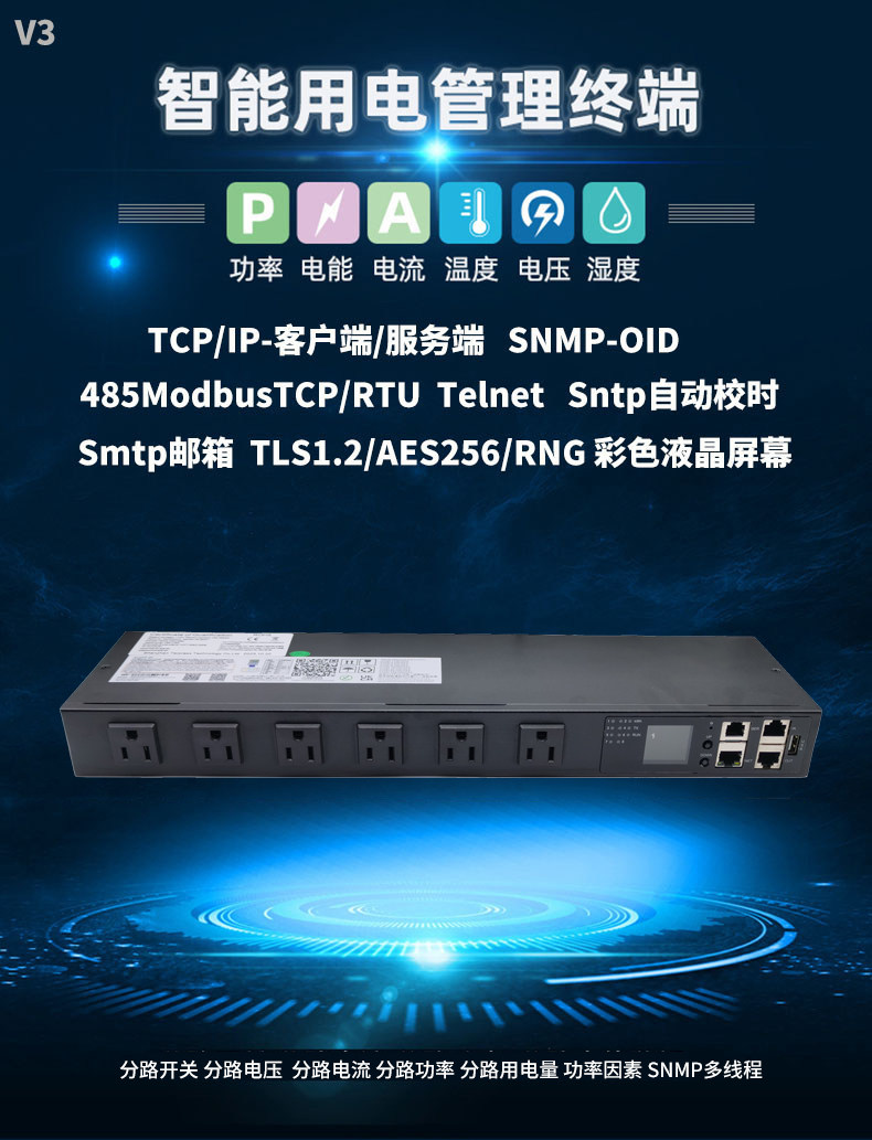 6位美规智能PDU远程控制SNMP-V1中英文界面telnet-485Modbus-TCP