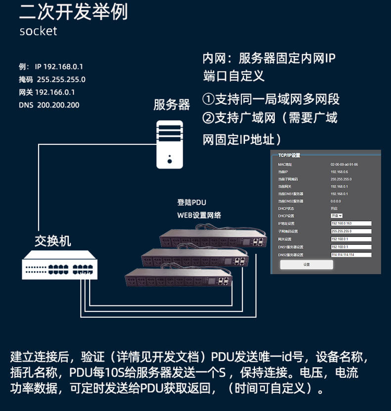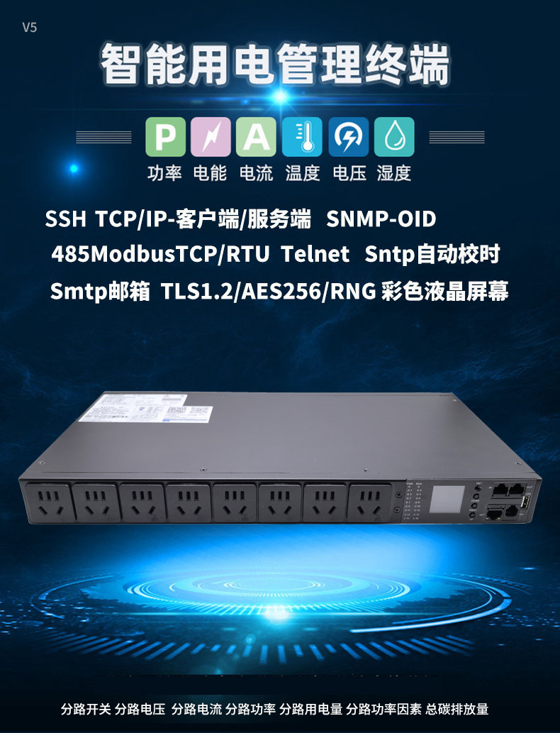 智能PDU机柜插座10口分监分控485TCP/snmp/pythonSSH协议网络控制