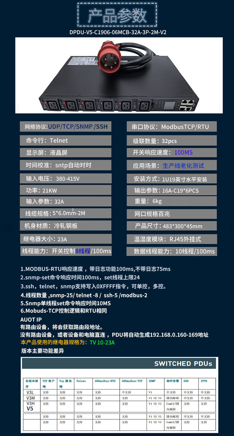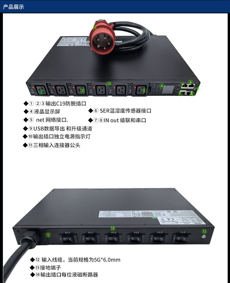 三相415V 6位C19智能PDU插座21KW负载抗大电流冲击老化测试使用