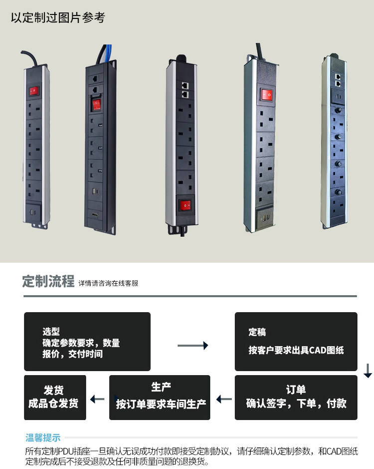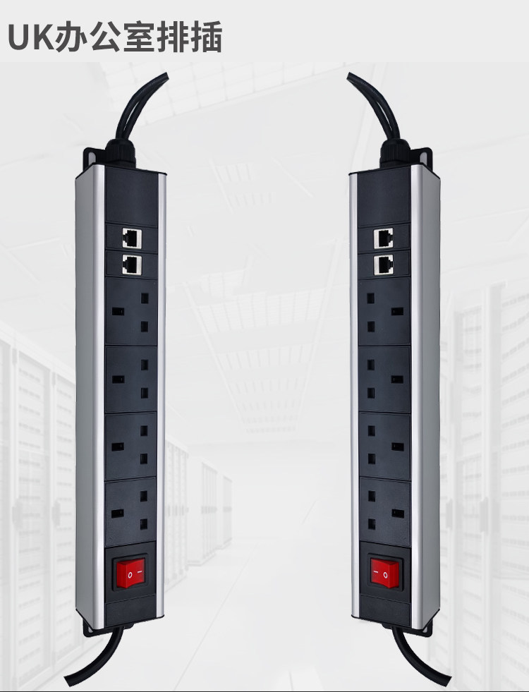 PDU机柜电源插座英规英标13A带双断开关铝合金7位排插接线板