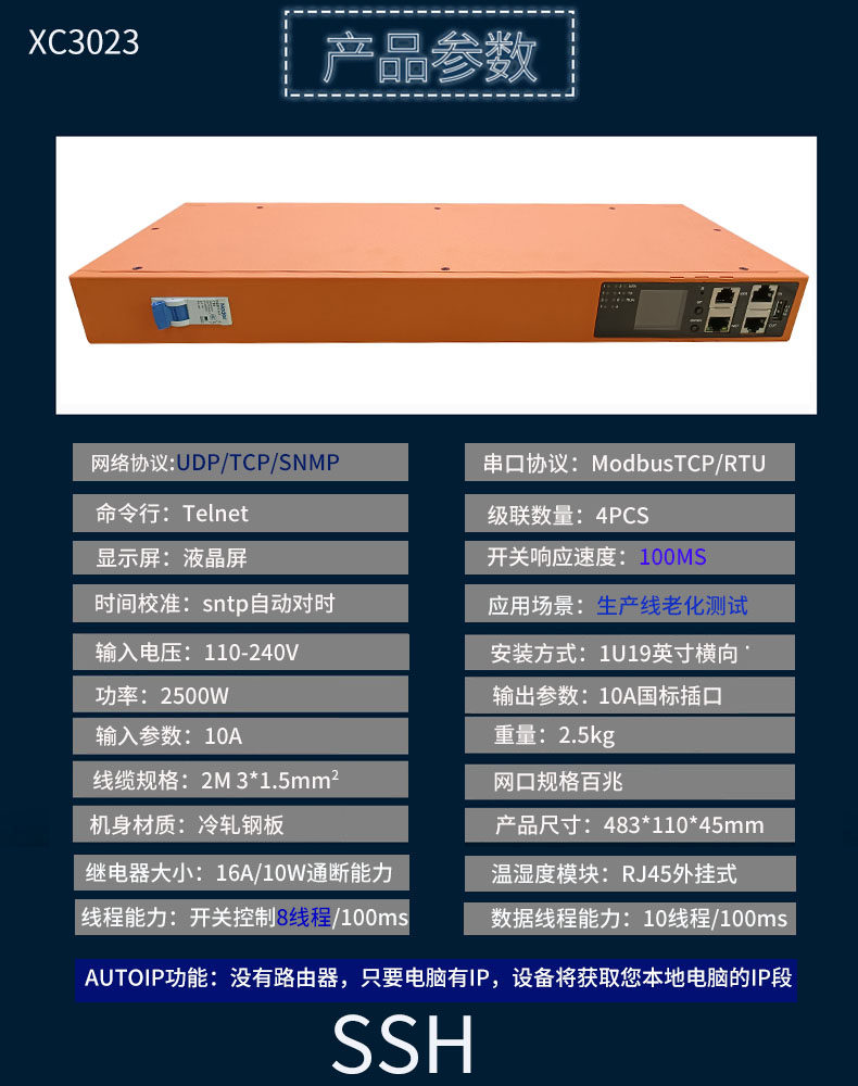 智能PDU网络控制插座8口16ASNMP Telnet SSH 485mopdbus-TCP RTU