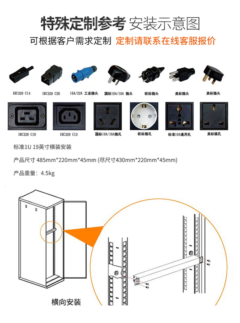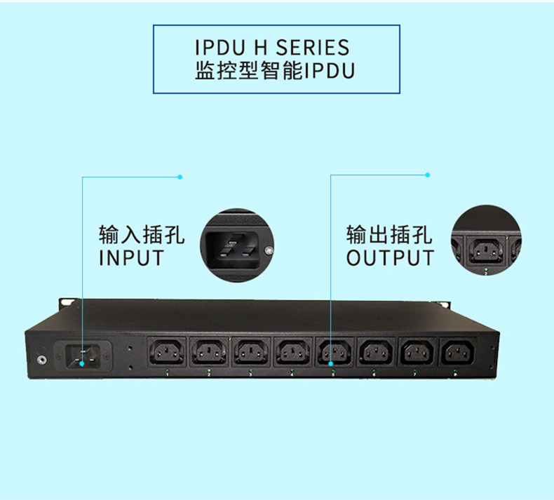 智能PDU插座8位10A 分路开关控制 热拔插指示灯19英寸485协议