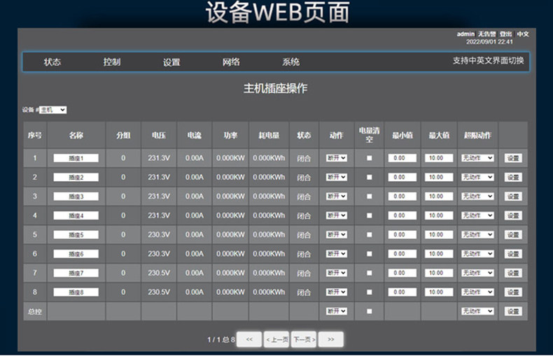 智能PDU电源插座TCPIPsnmp协议485Modbus RS232程控分路开关