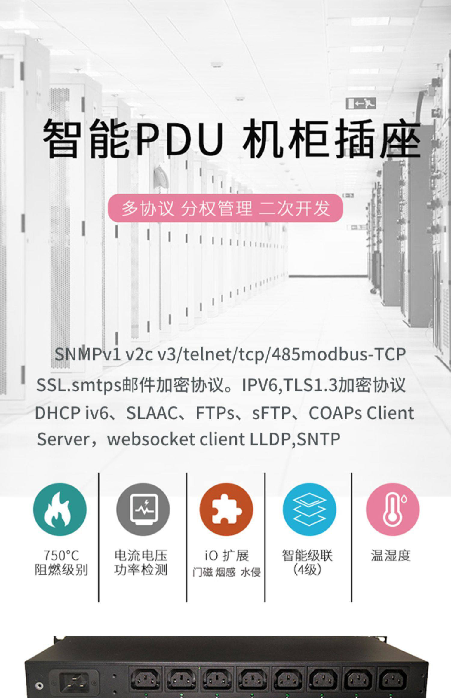 智能PDU机柜插座20口C13 HTTP SSH SNMP协议多用户分权管理电源