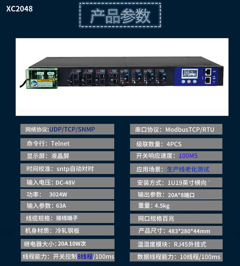 48V直流 snmp 分监分控 8路输出机架式PDU电源插座