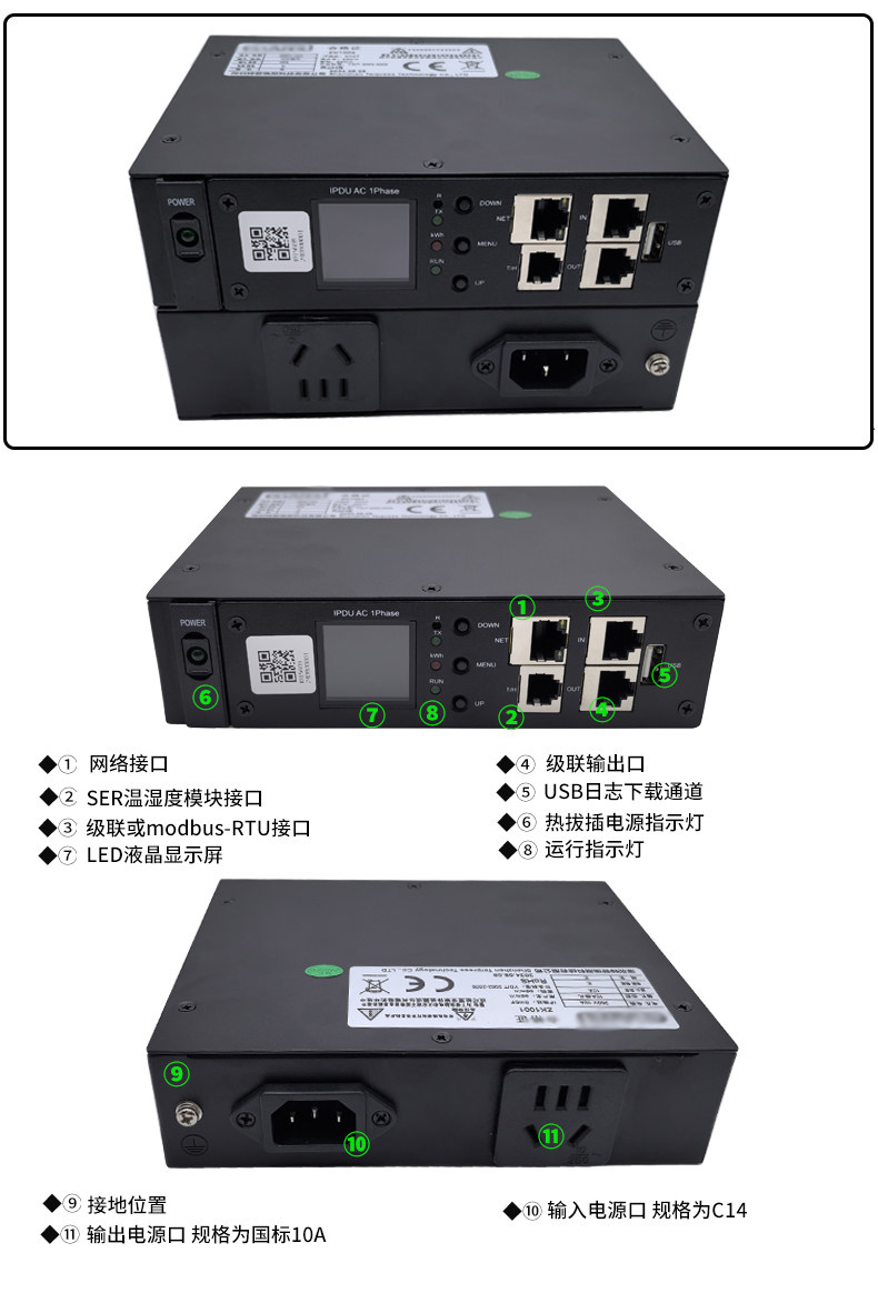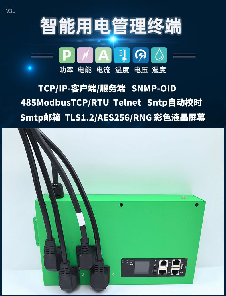 TCP/IP-客户端/服务端 SNMP-OID485ModbusTCP/RTU Telnet Sntp自动校时Smtp邮箱 TLS1.2/AES256/RNG 彩色液晶屏幕