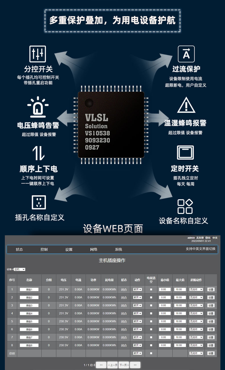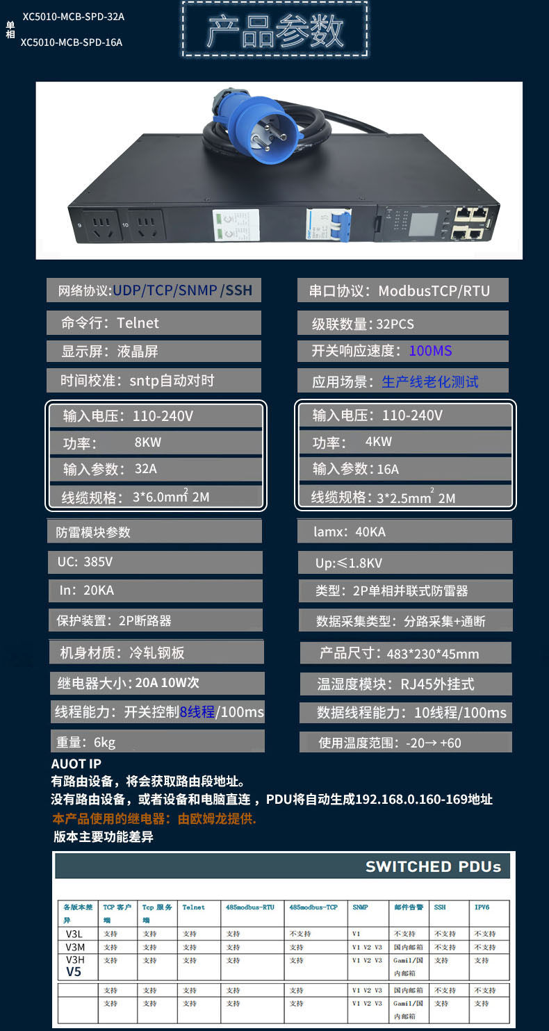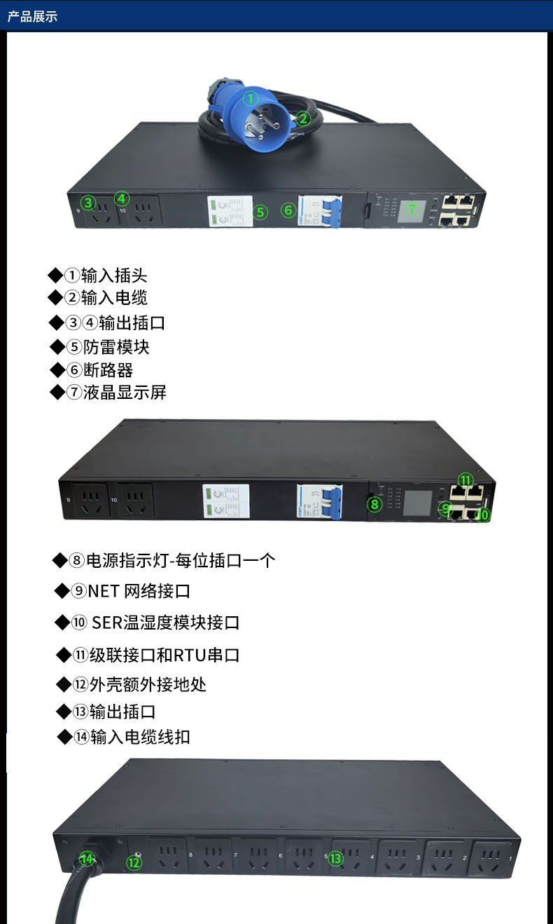 10口Ai服务器抗大电流冲击防雷智能pdu插座snmp协议分路检测控制