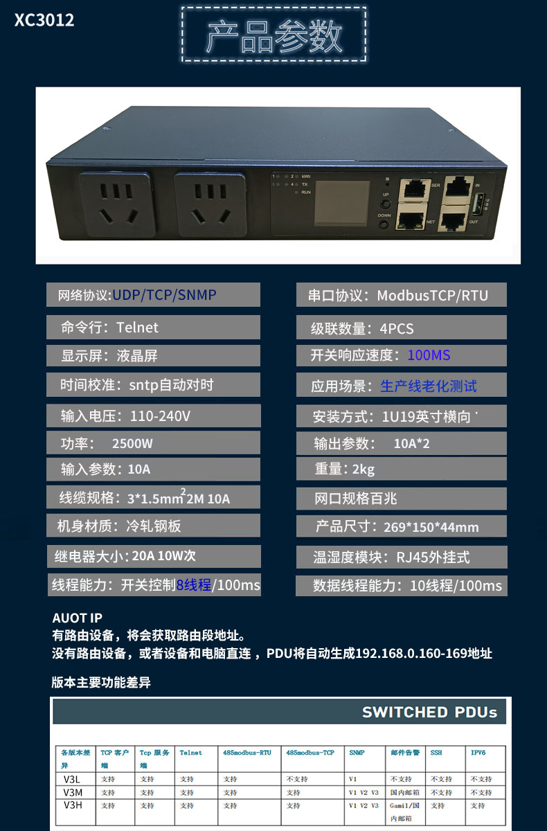智能PDU机柜电源插座2口 telnet snmp SSH网络开发编程 远程控制