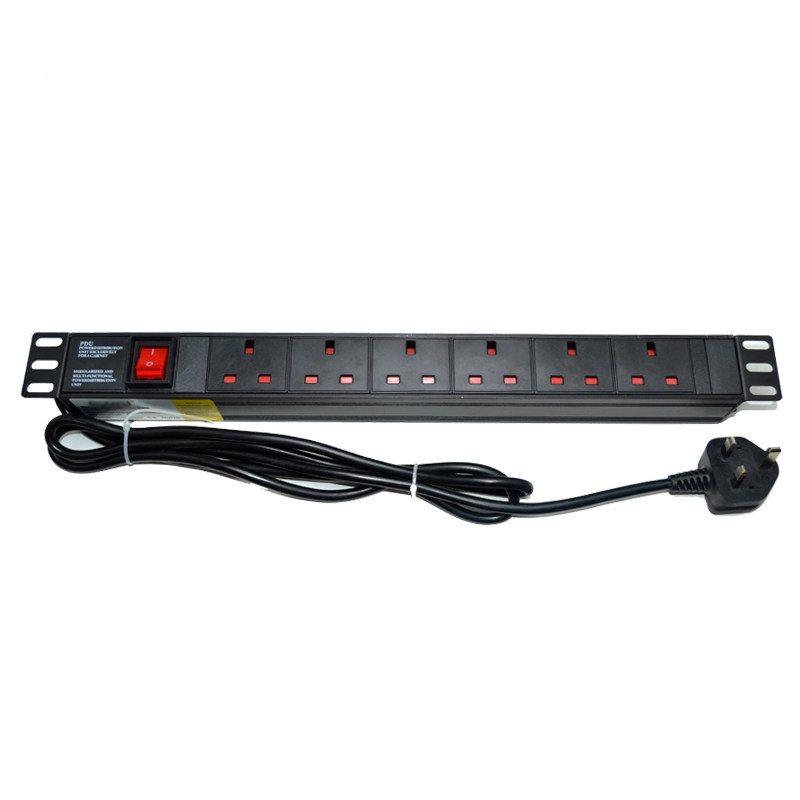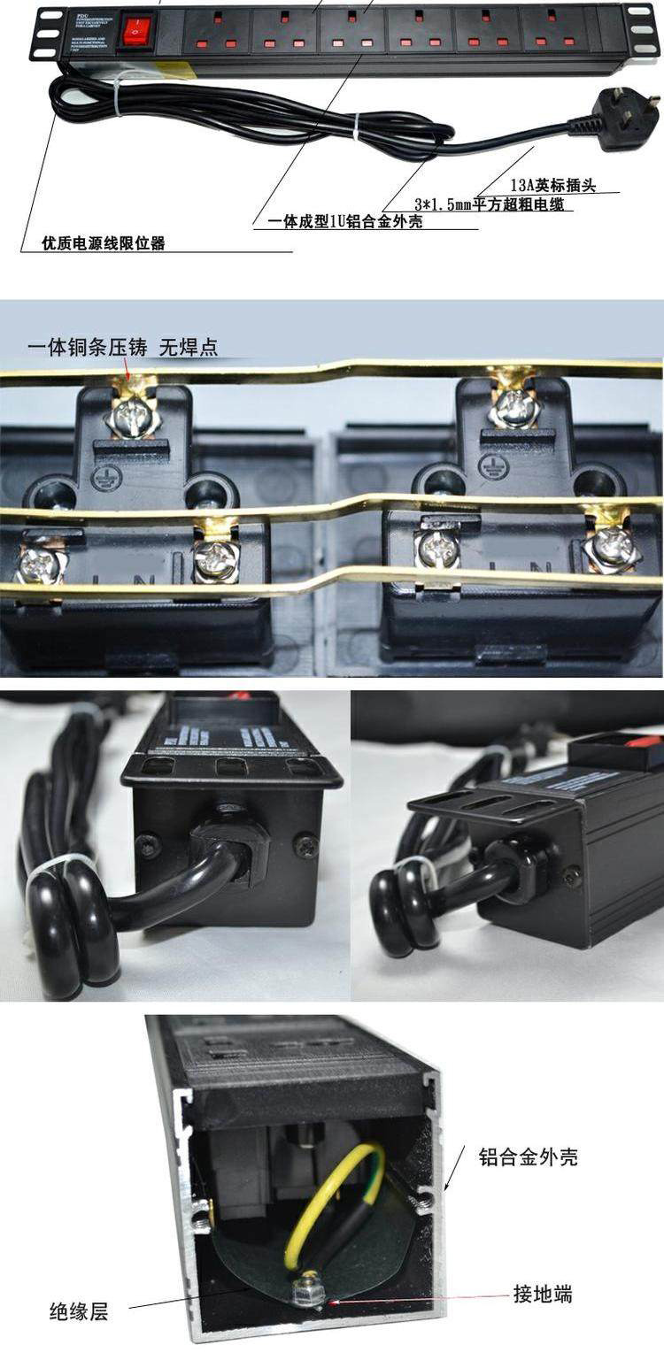 PDU机柜插座13A 6位带开关19英寸1U铝合金英规英标电源插座排插
