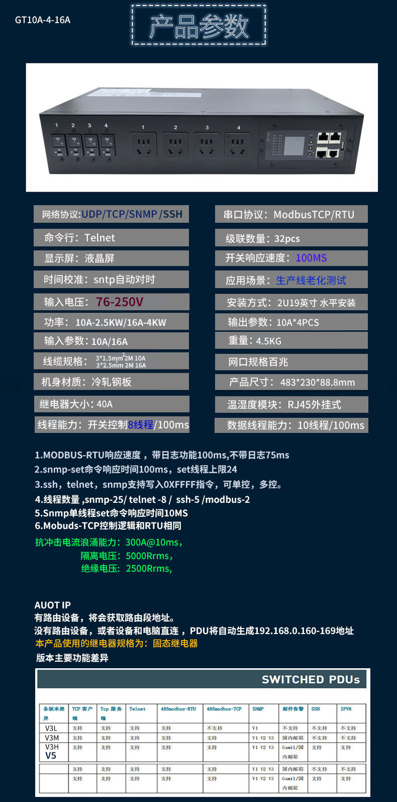Ai服务器测试智能PDU Telnet snmp python 4路10A插口固态继电器