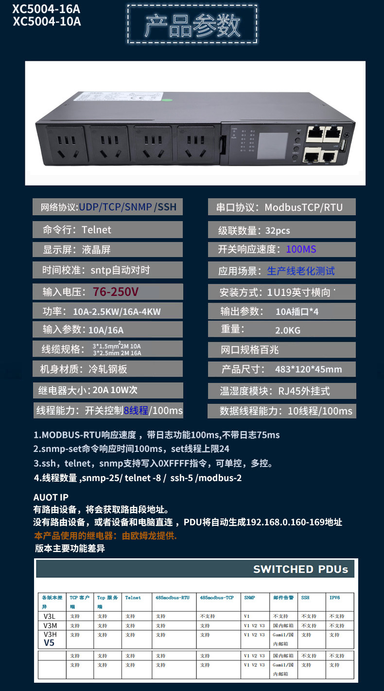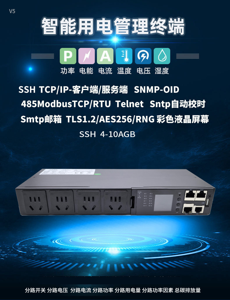 智能PDU电源SNMP Telnet MODBUS协议4路10A分监分控抗大电流冲击