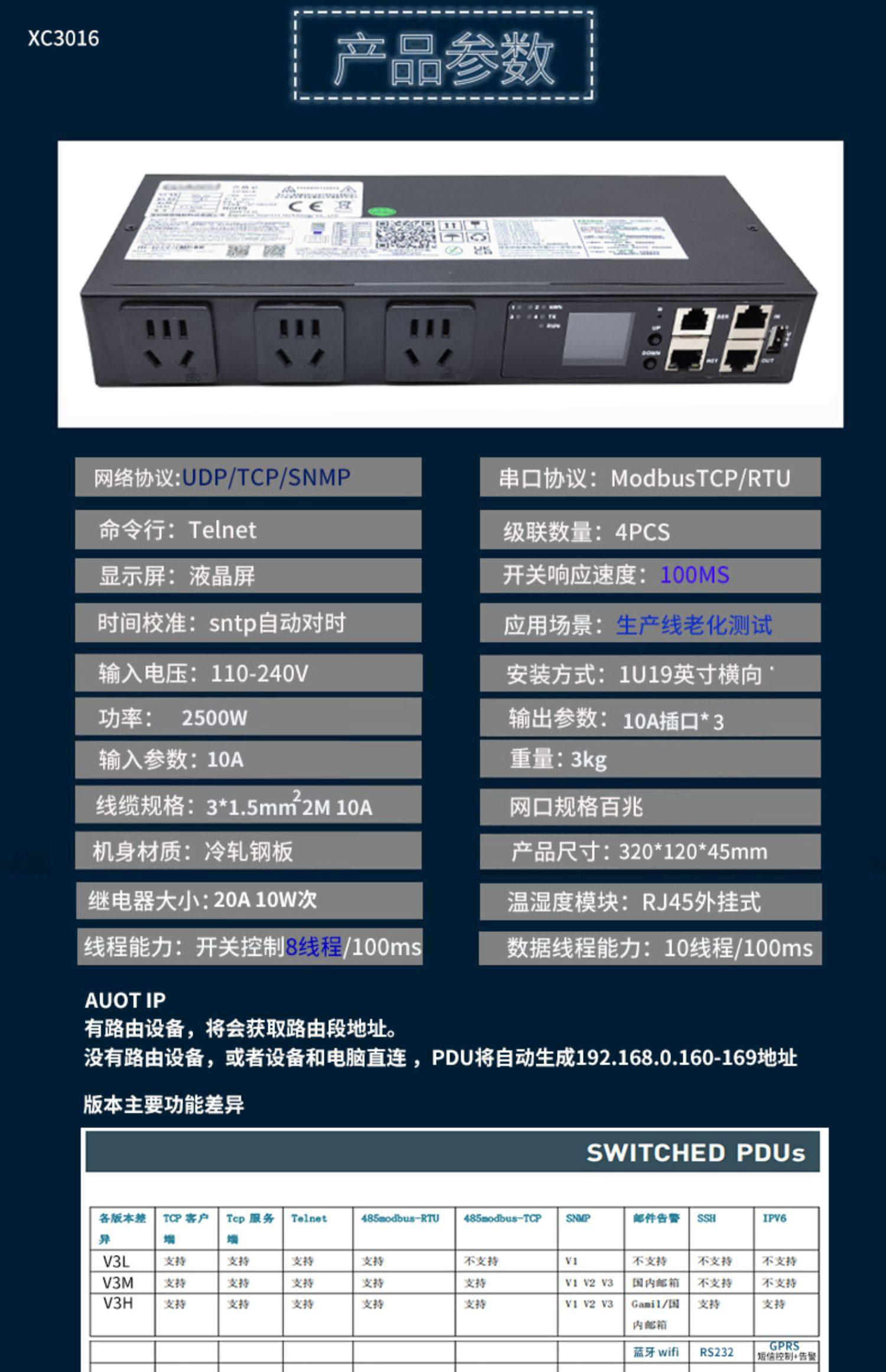 智能PDU插座3位10A