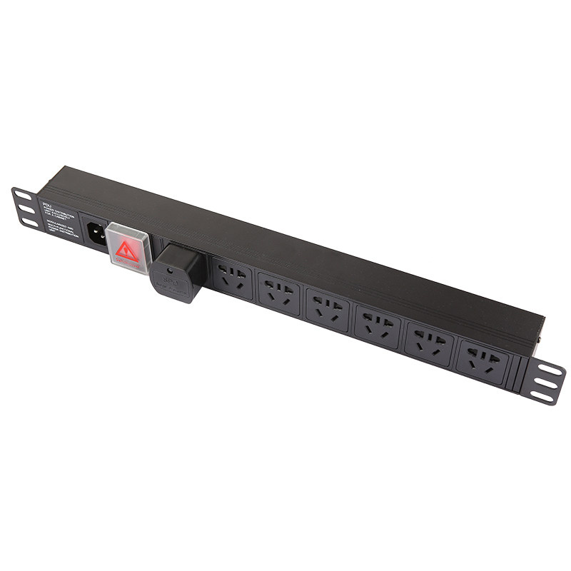 PDU机柜电源插座10A6位防雷带双断开关1U19英寸铝合金排插接线板