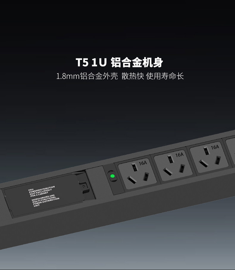 PDU机柜电源插座13A1U19英寸8位铝合金排插接线板排插