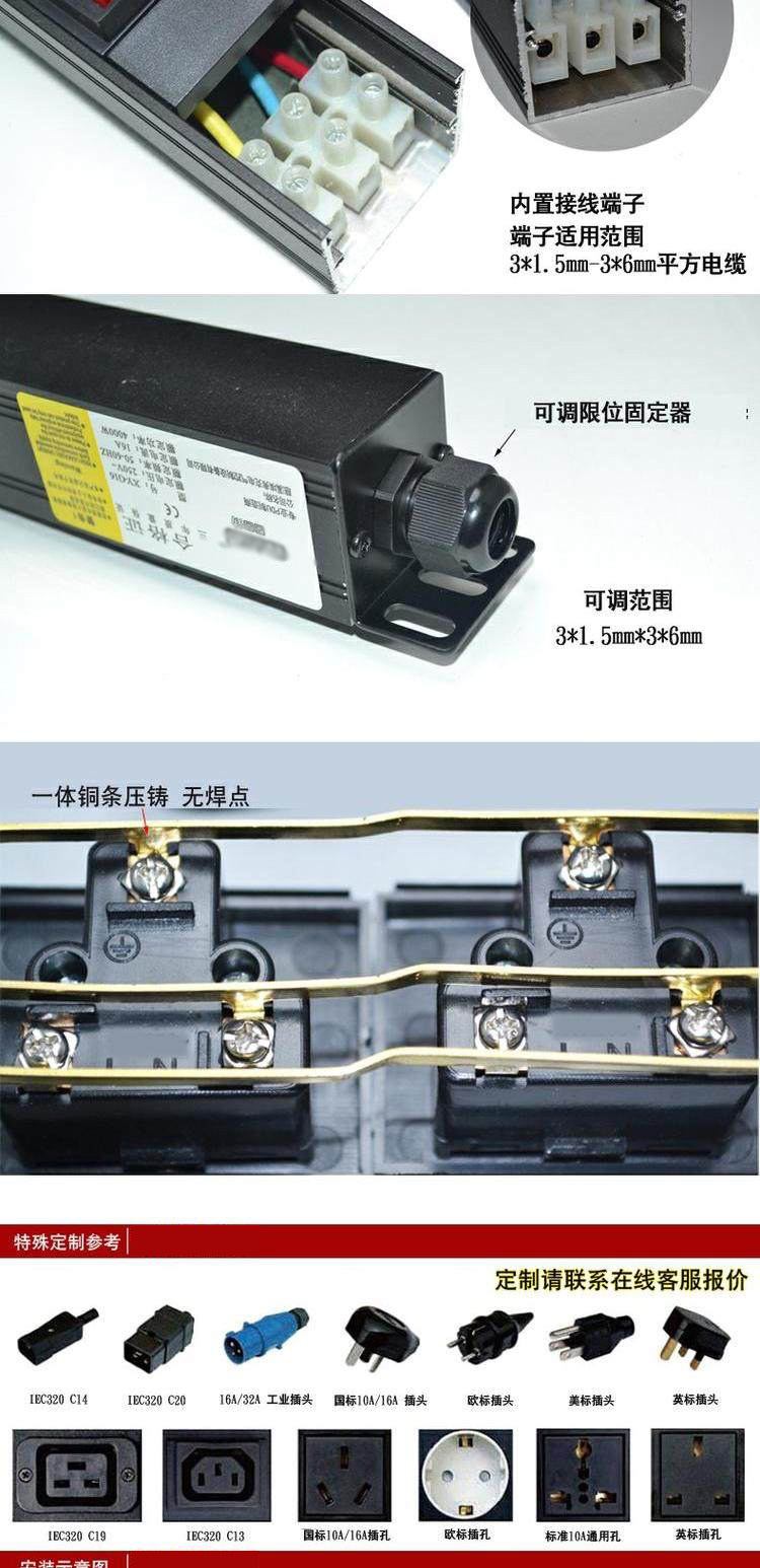 PDU机柜电源插座英规英标13A带双断开关铝合金7位排插接线板
