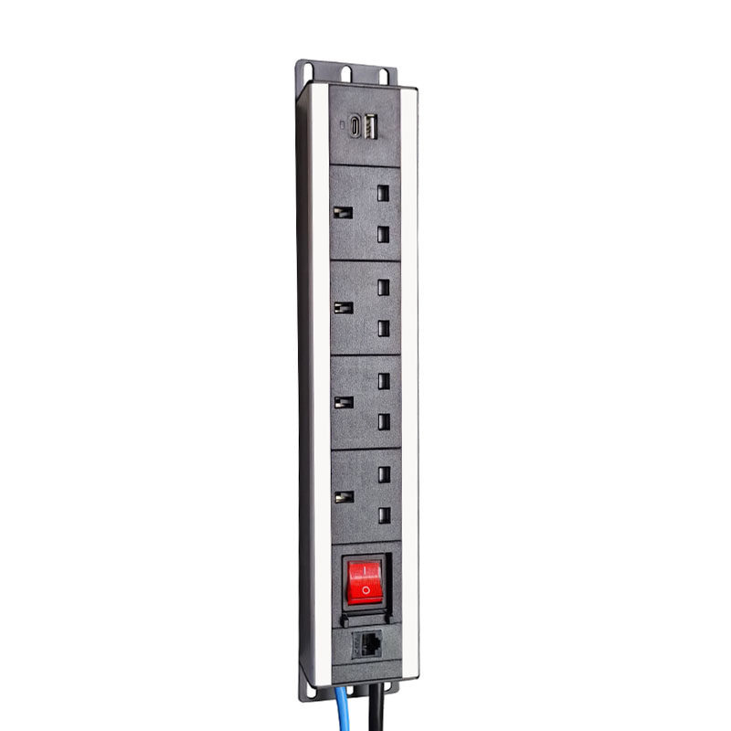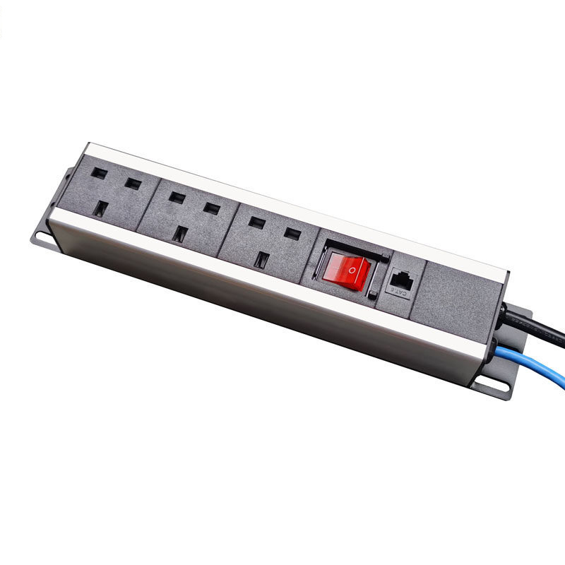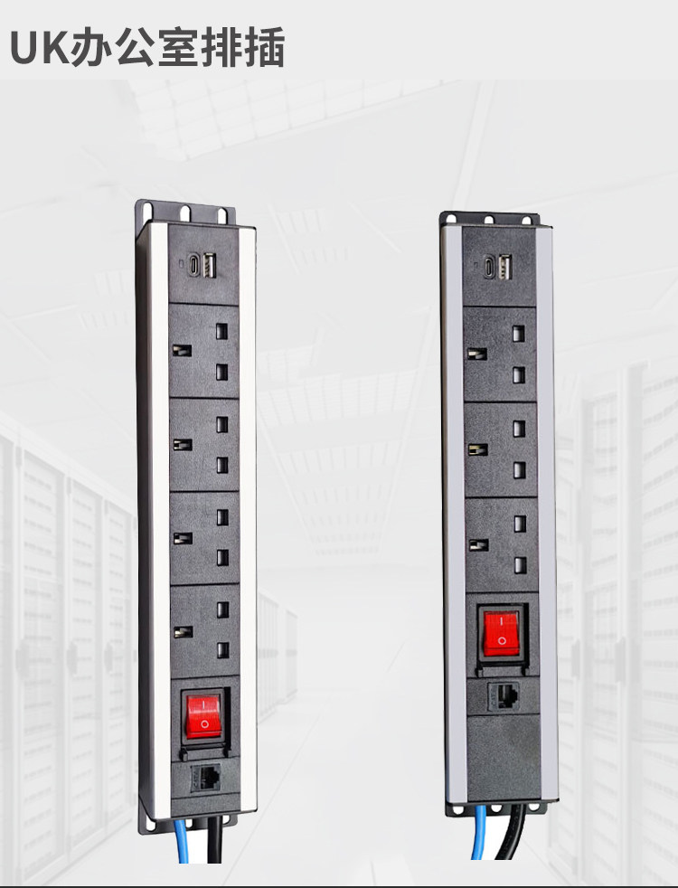 PDU机柜电源插座英规英标13A带双断开关铝合金7位排插接线板
