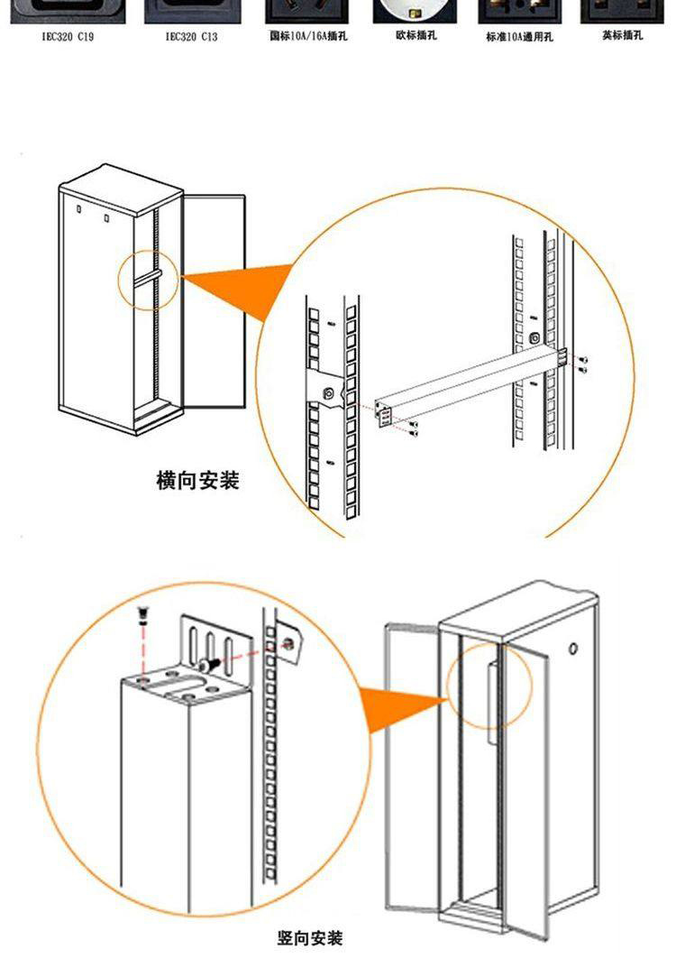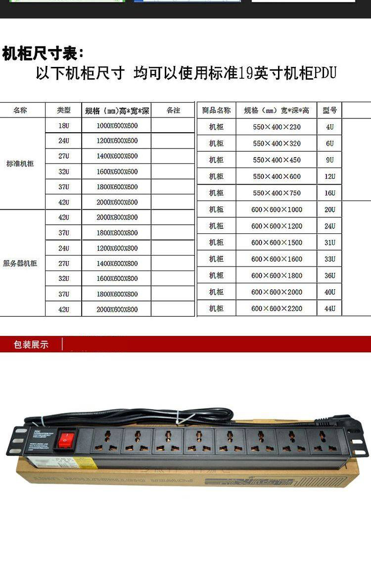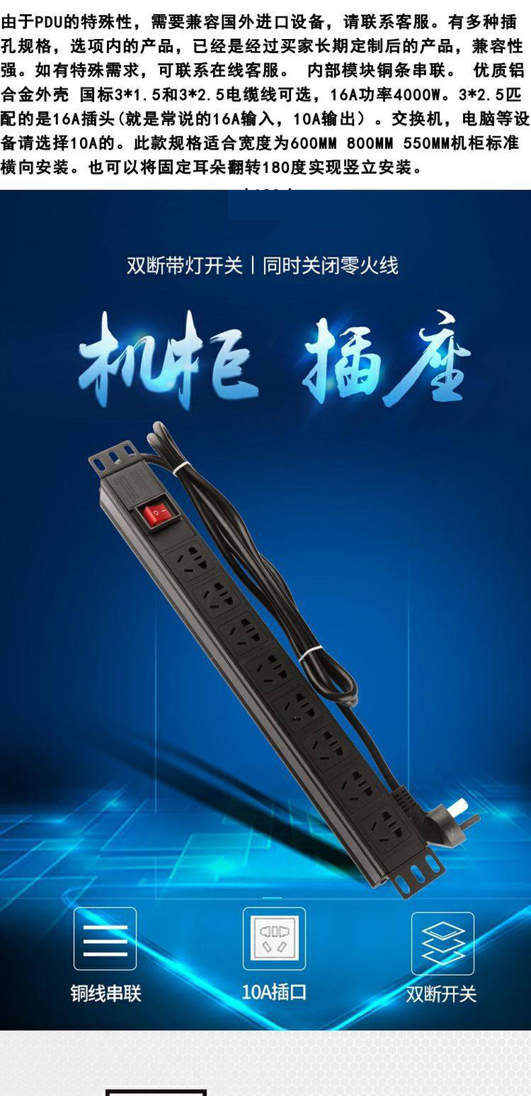 PDU机柜电源插座13A1U19英寸8位铝合金排插接线板排插