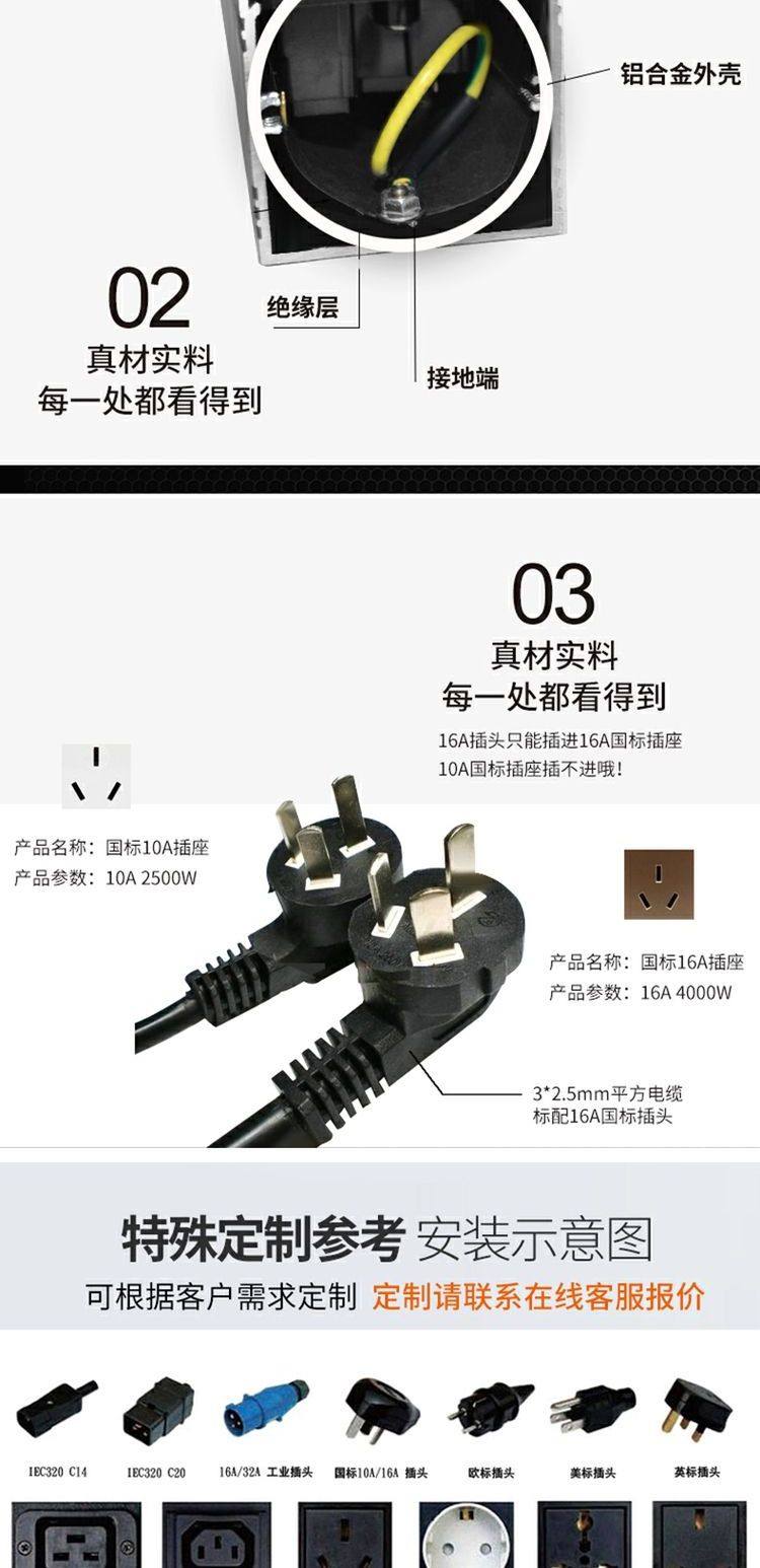 PDU机柜电源插座英规英标13A带双断开关铝合金7位排插接线板