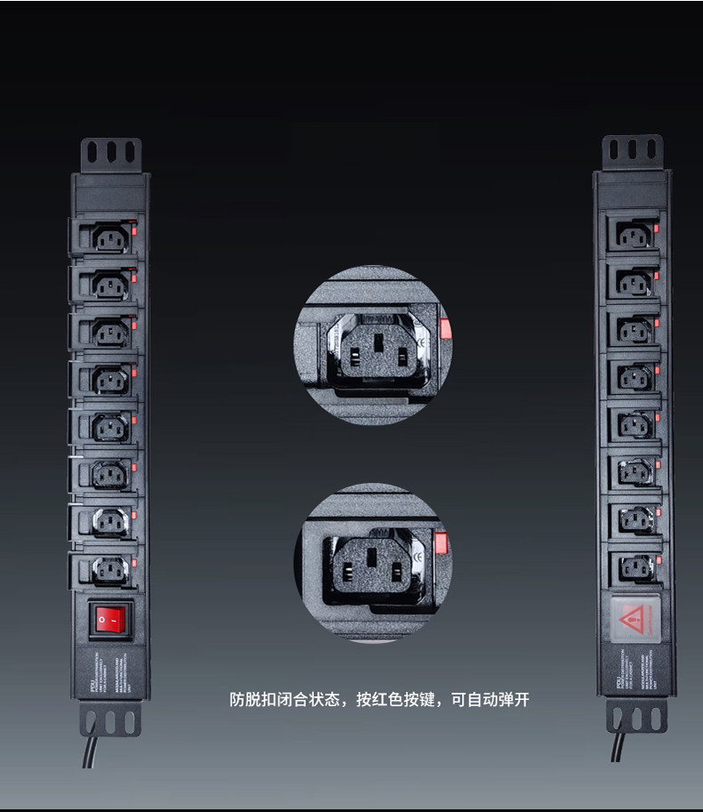 PDU机柜插座C14输入8位C13防脱落插孔UPS外展带双断开关电源排插