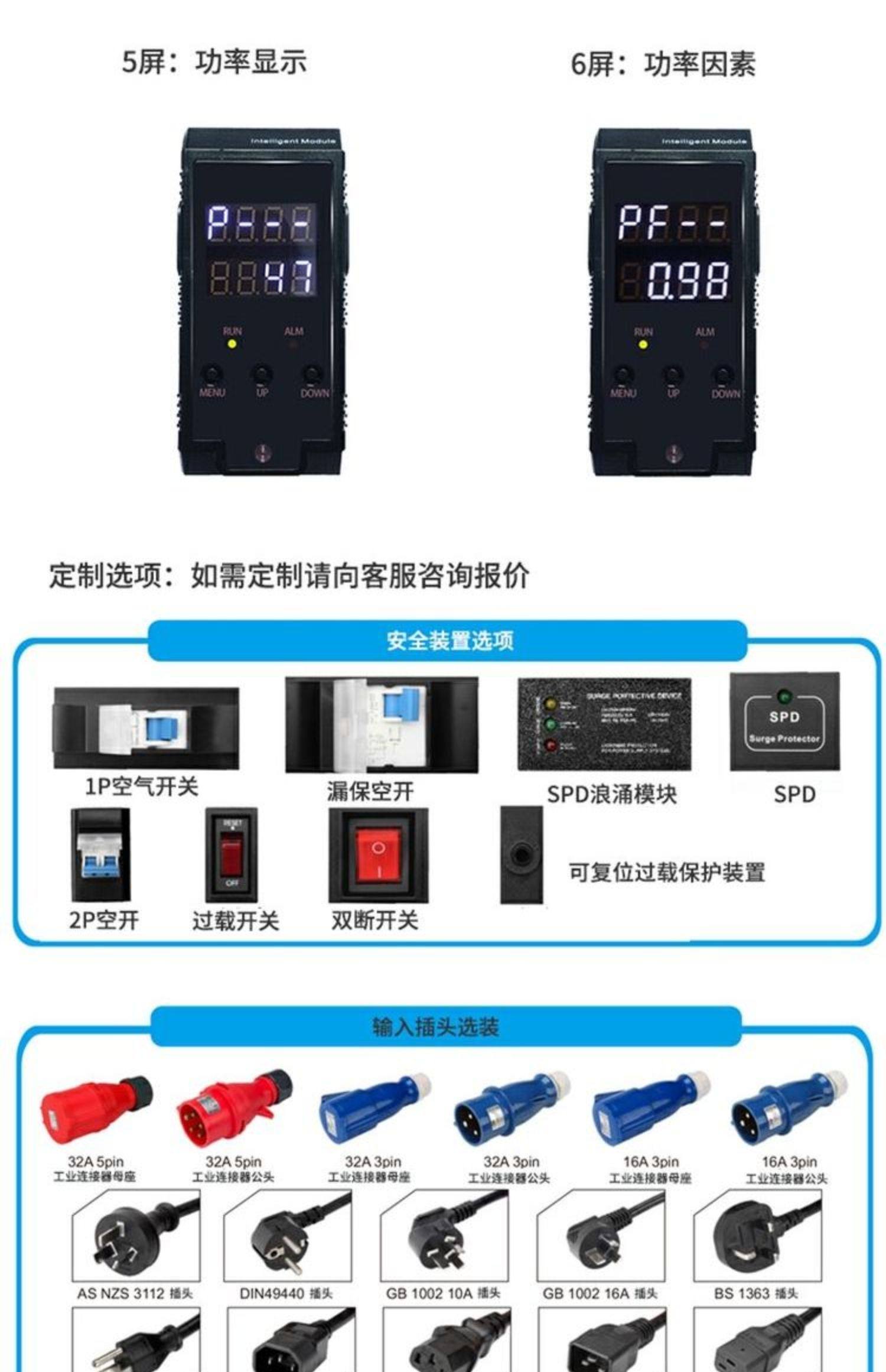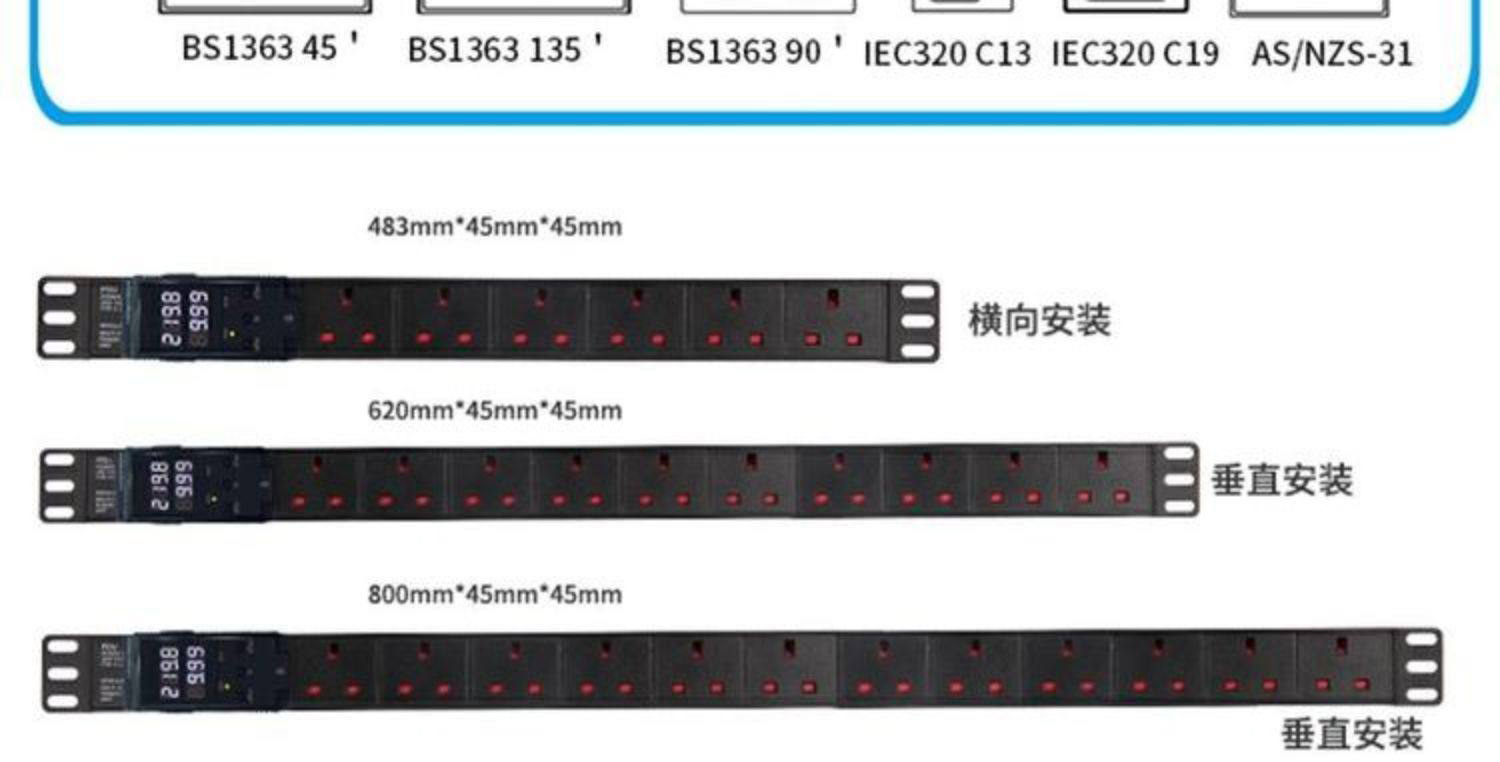 智能PDU机柜电源插座英规13A电压电流功率电能显示过压过流蜂鸣