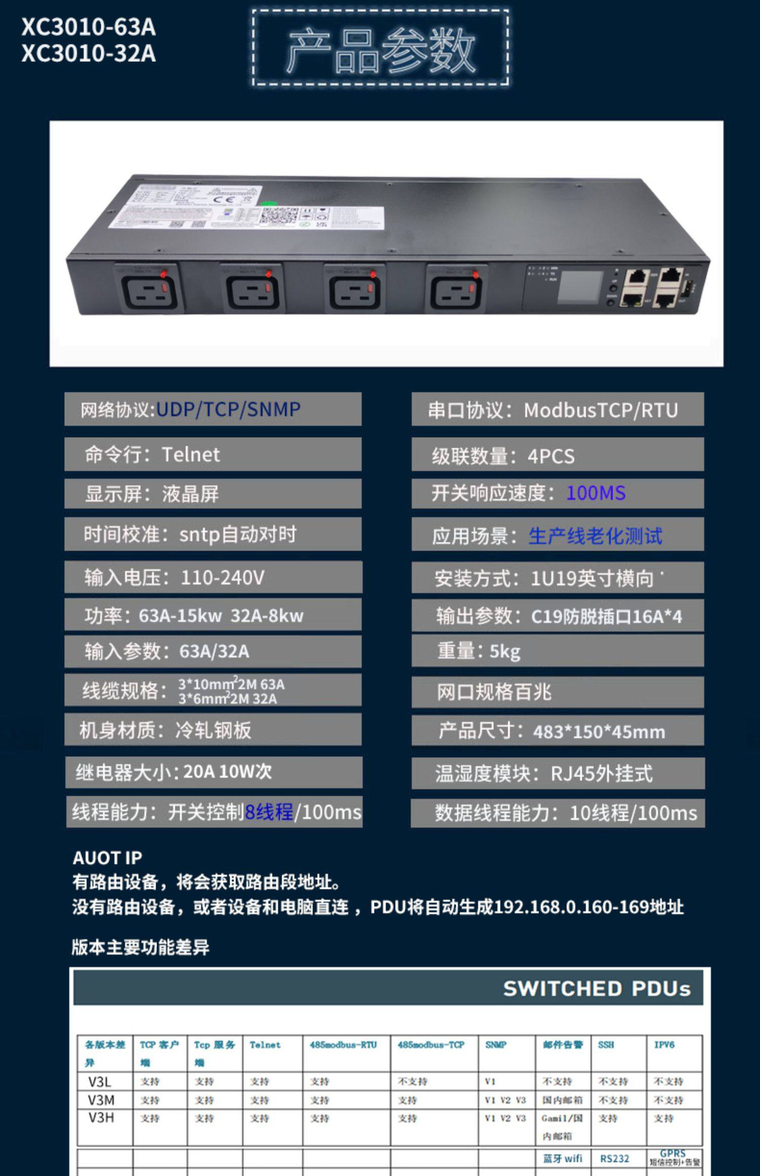 63A大功率智能PDU插座Telnetsnmppython Ai服务器老化测试专用