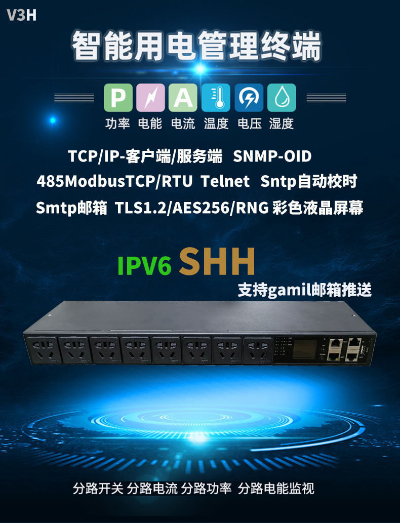 1、TCP/IP-客户端/服务端 SNMP-OID485ModbusTCP/RTU Telnet Sntp自动校时Smtp邮箱 TLS1.2/AES256/RNG 彩色液晶屏幕