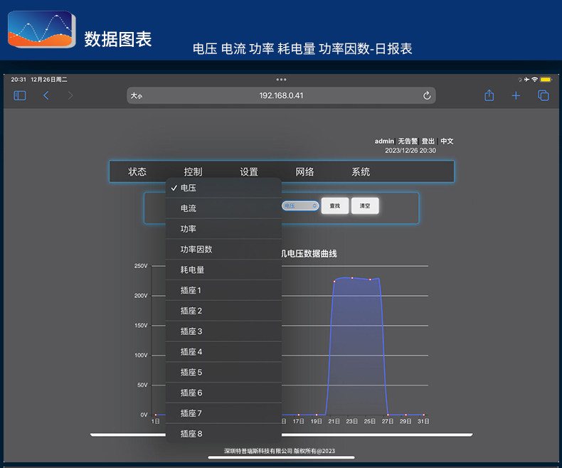 2、分路开关总路电压 总路电流总路功率总路用电量总路功率因素总碳排放量