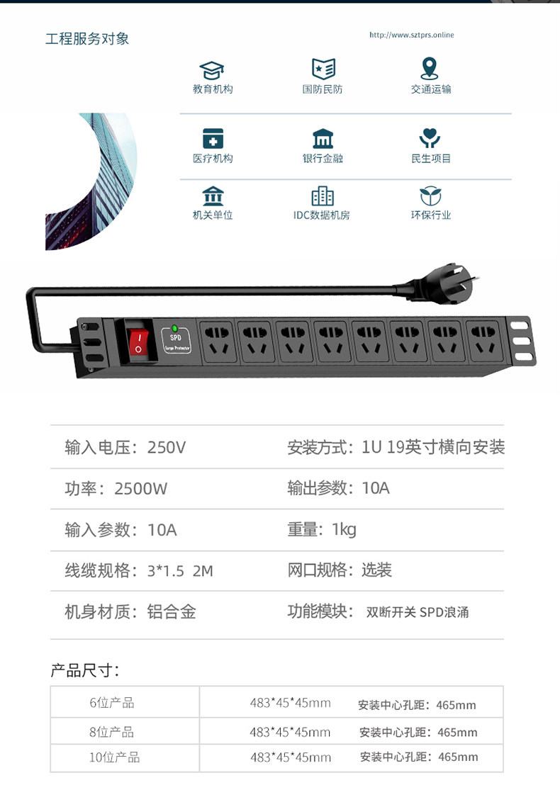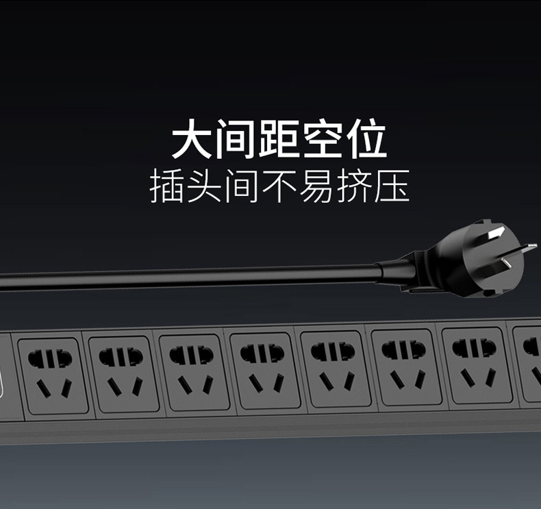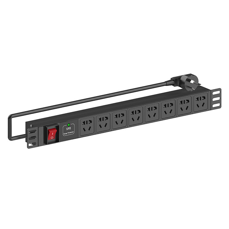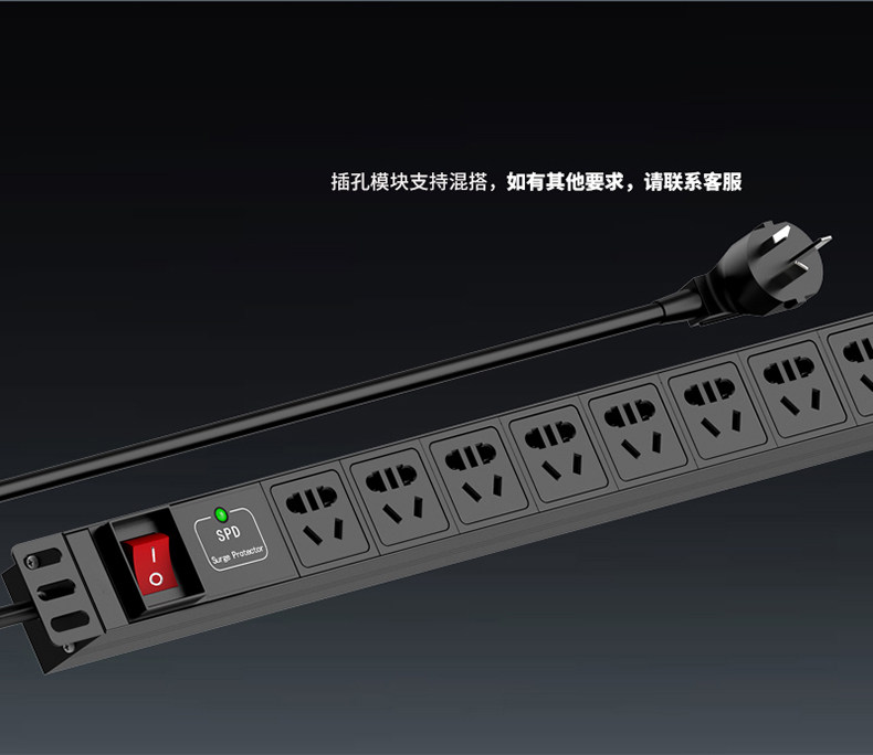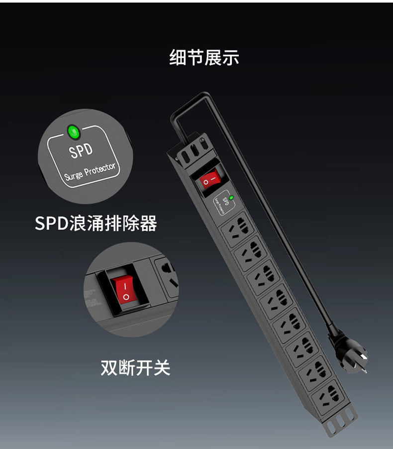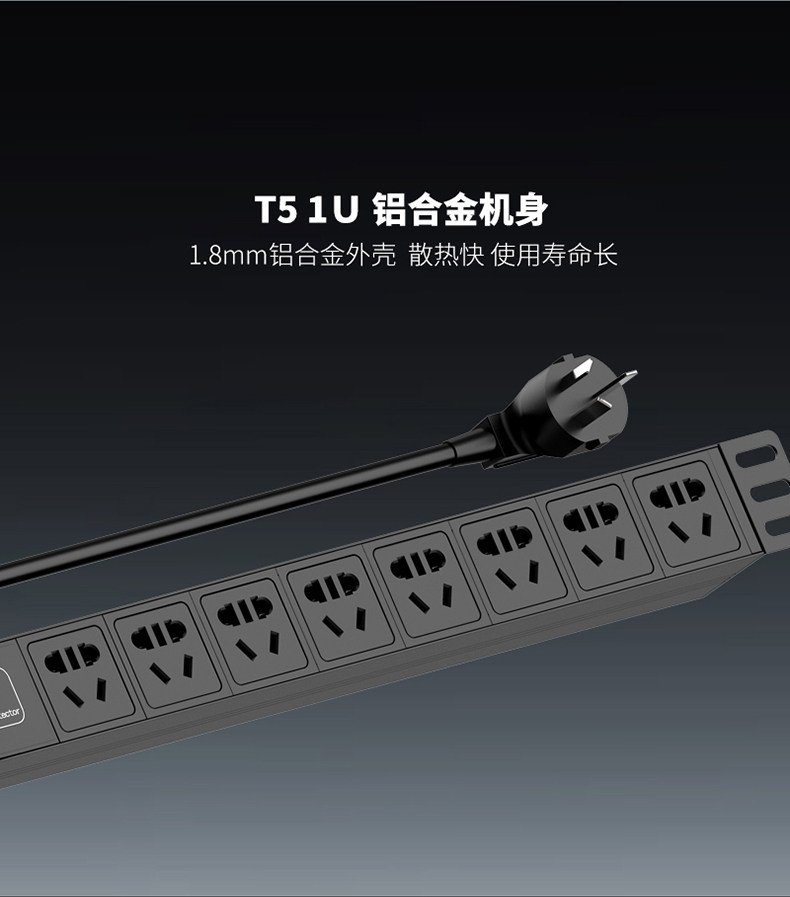 PDU机柜专用电源插座1U8位19英寸10A双断开关防雷铝合金排插