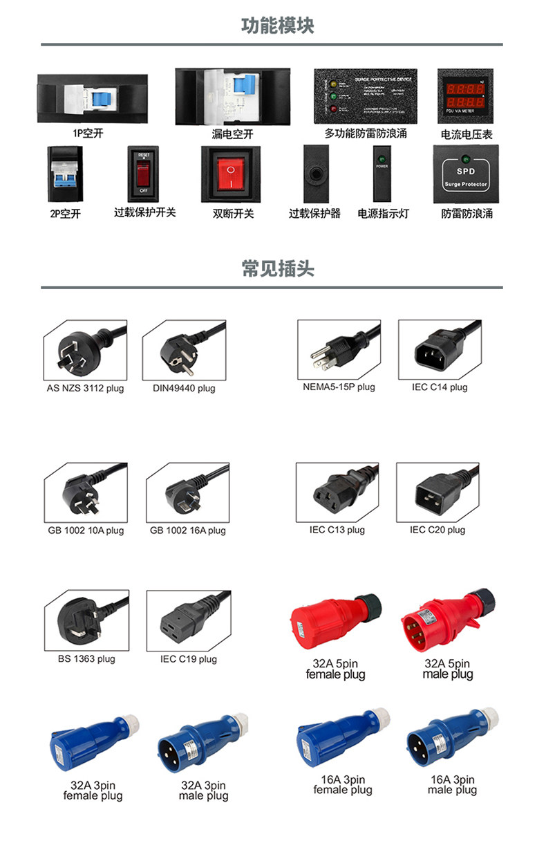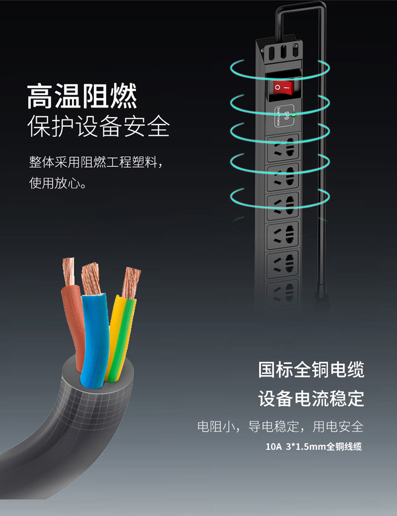 PDU机柜电源插座英规英标13A带双断开关铝合金7位排插接线板