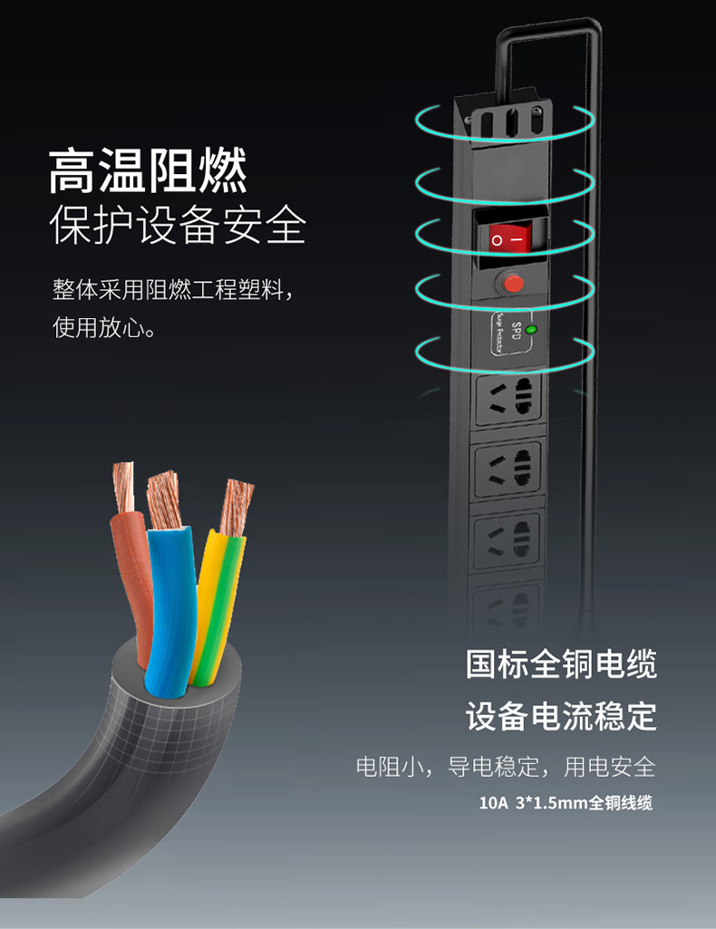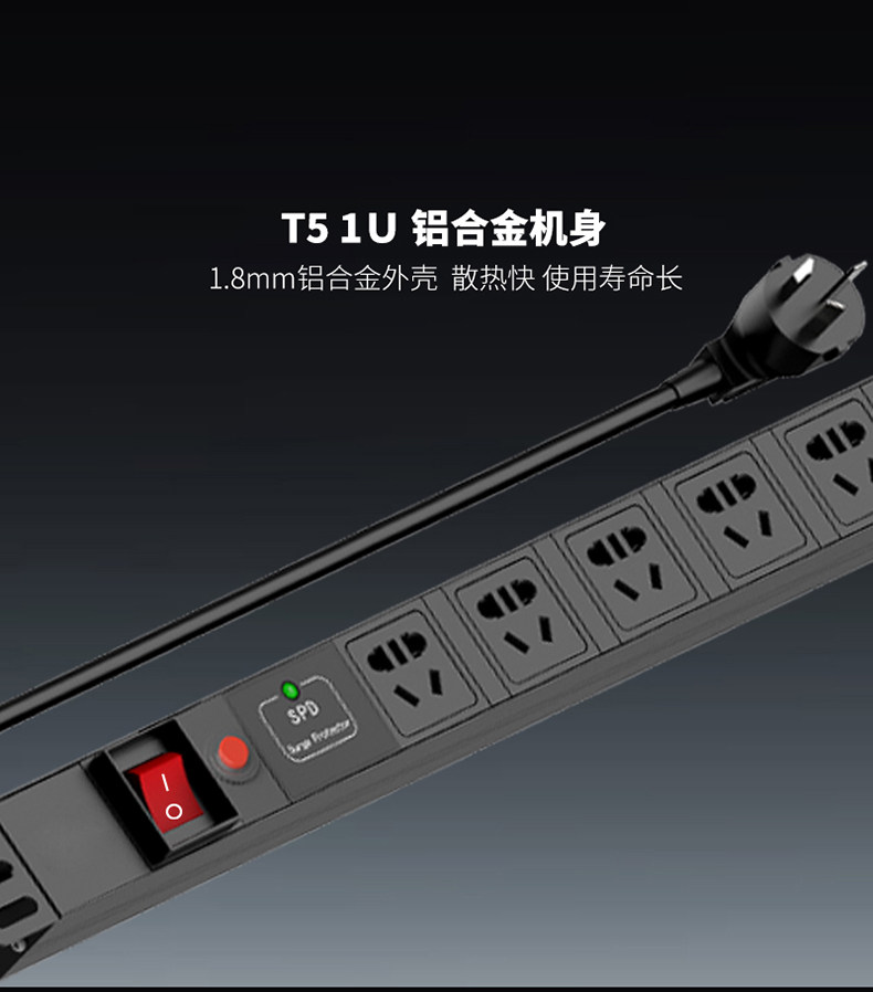 PDU机柜电源插座6位10A带双断开关过载保护防雷铝合金排插接线板