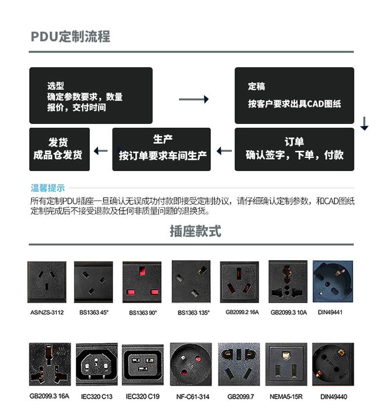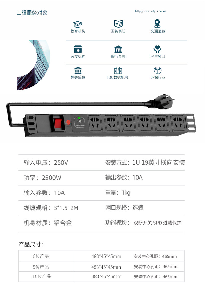 PDU机柜电源插座13A1U19英寸8位铝合金排插接线板排插