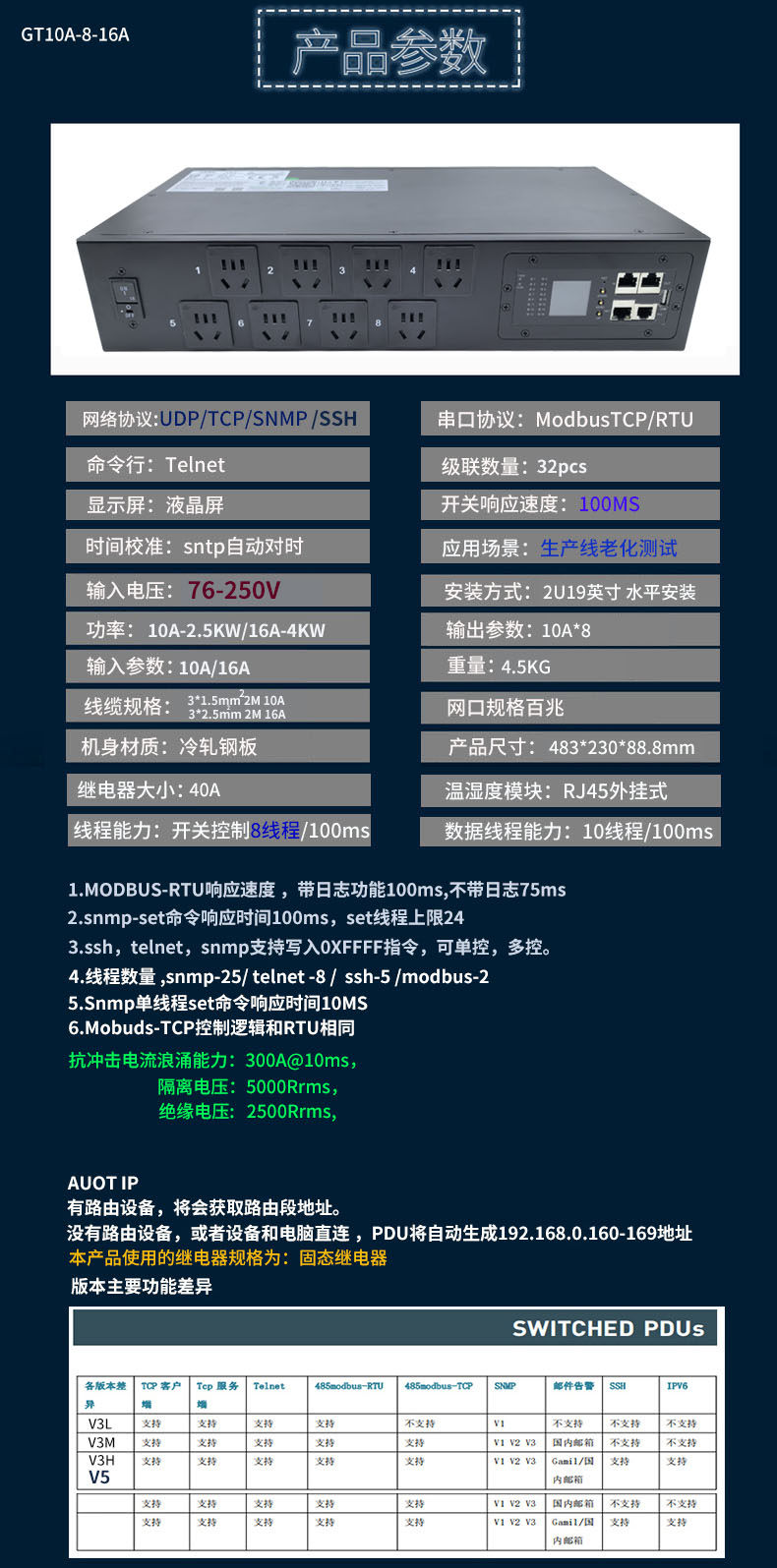 Ai服务器测试智能PDU插座 snmp python SSH 8插口固态继电器
