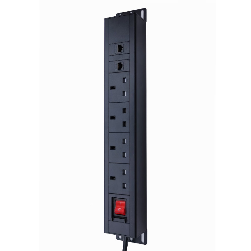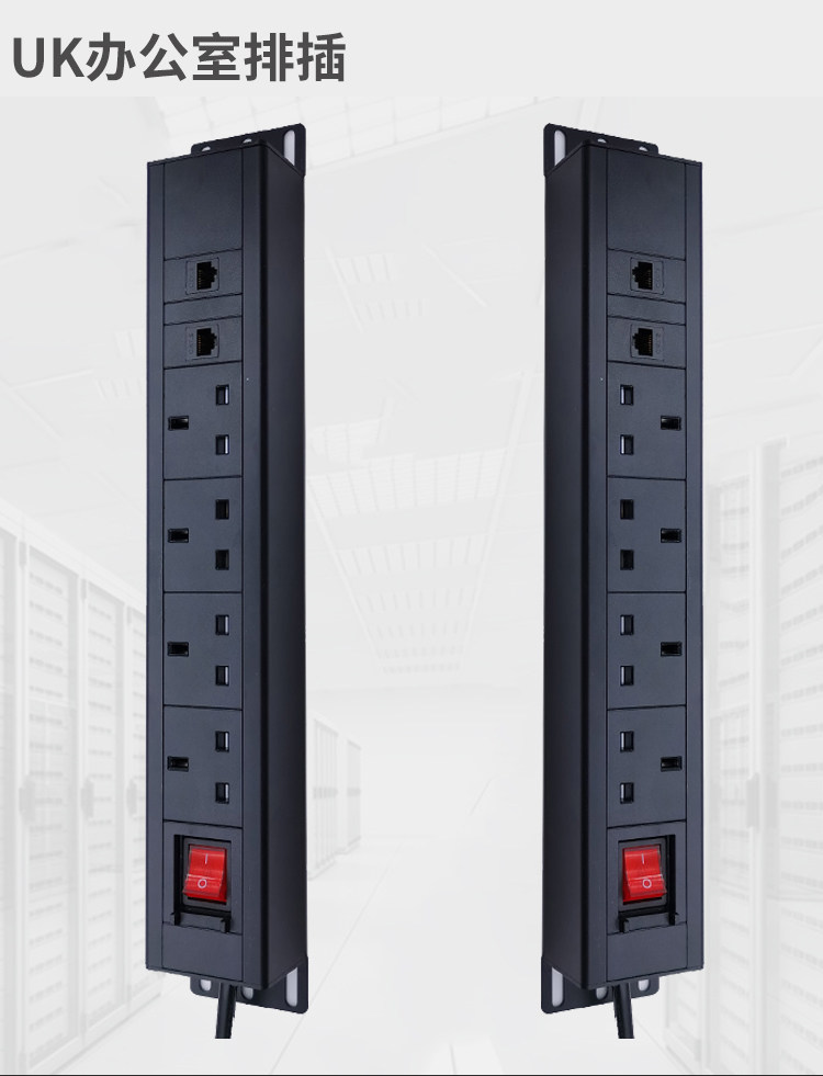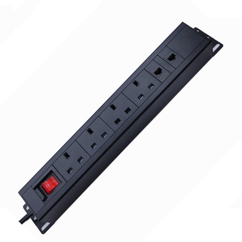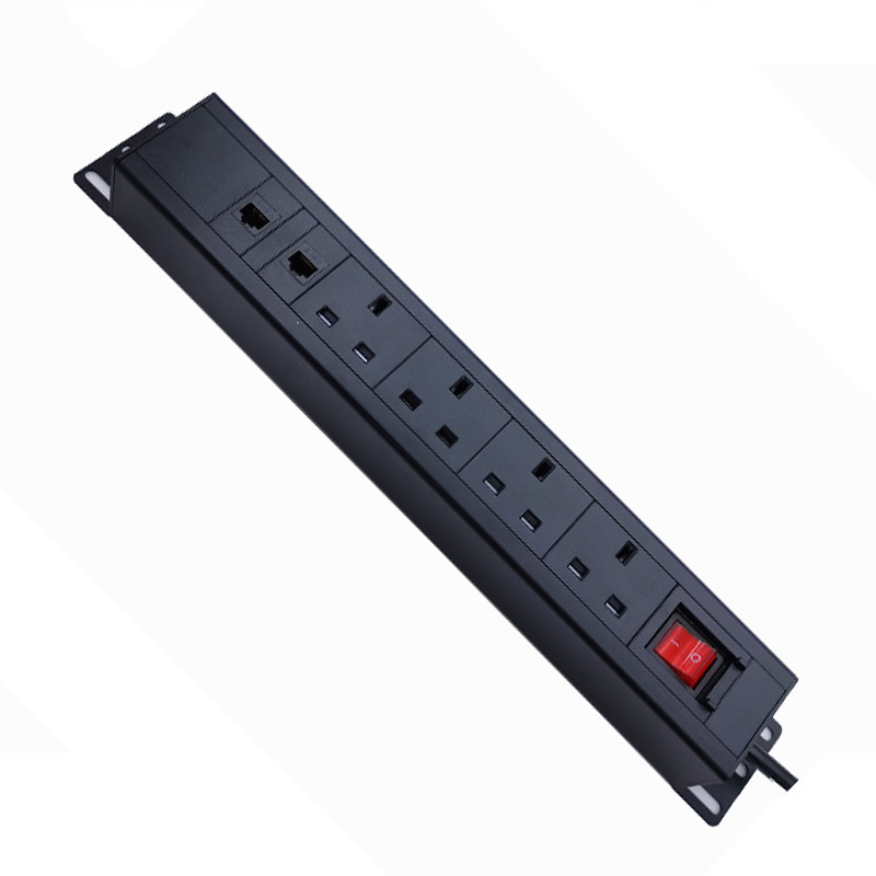 铝合金办公1.4U桌面插座13A英规输出4位UK插口2个CAT6网口