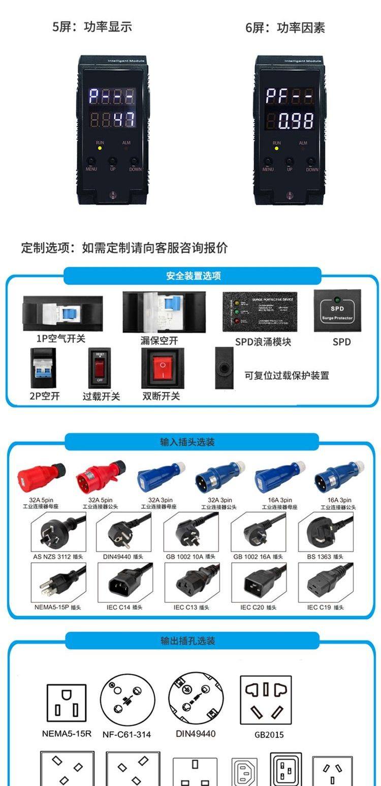 智能PDU机柜电源插座欧规欧标16A电压电流功率显示过压过流蜂鸣