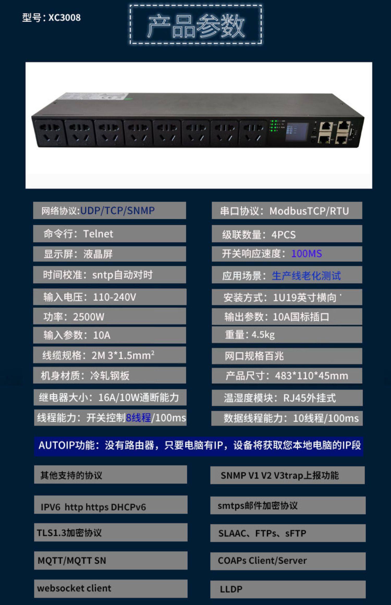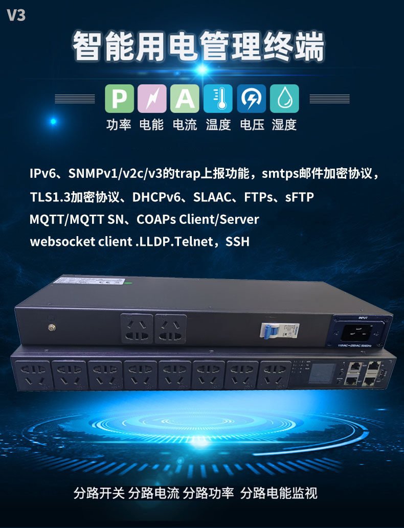 智能PDU机柜插座SSH、telnet、snmp、ipv6、smtps邮件开发编程
