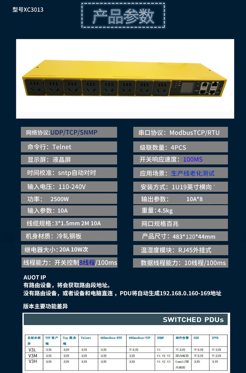 8位10A分控 SNMP 485modbus-Tcp RTU 多线程网络智能PDU电源插座
