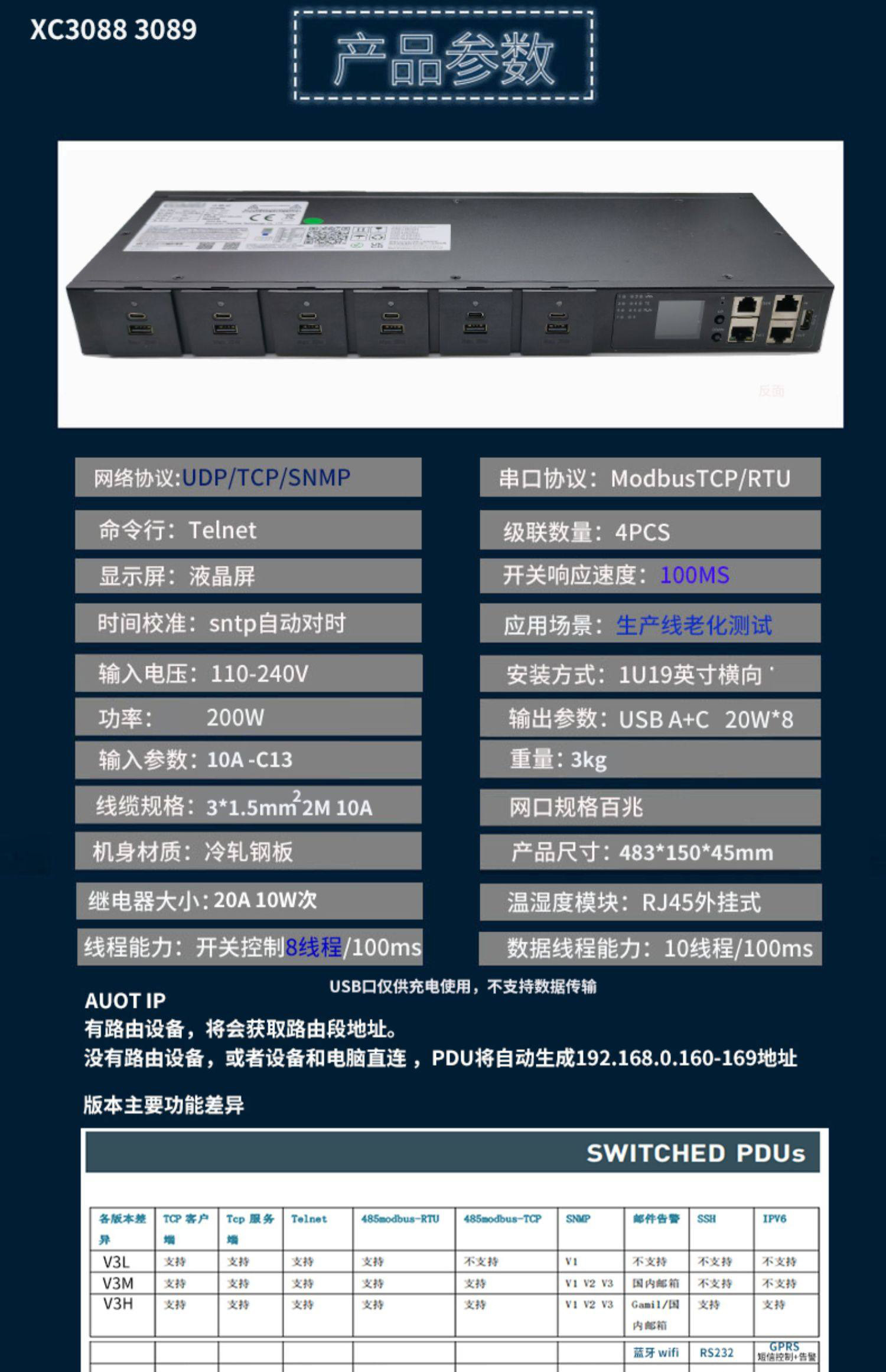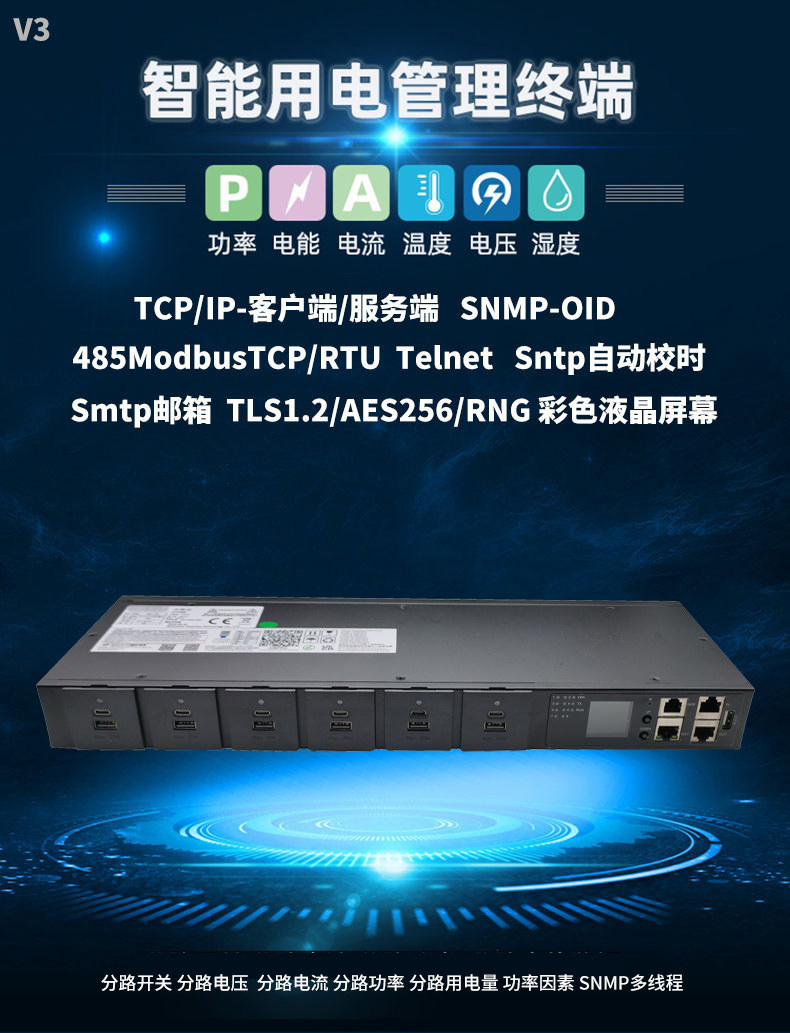 智能PDU插座8位20瓦USB A+C远程控制集中管理独立开关数据采集