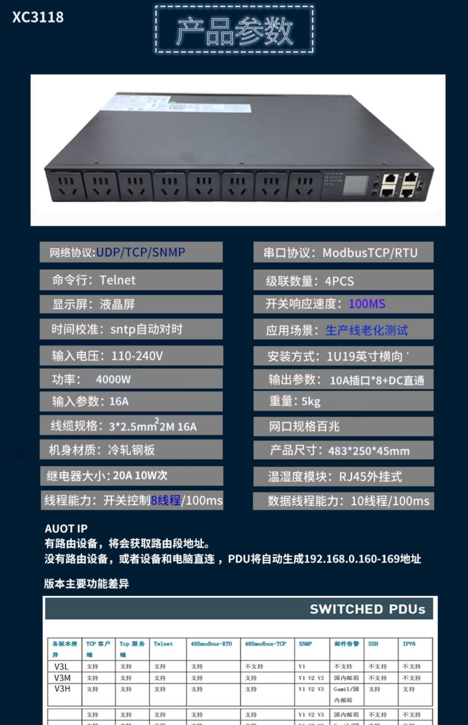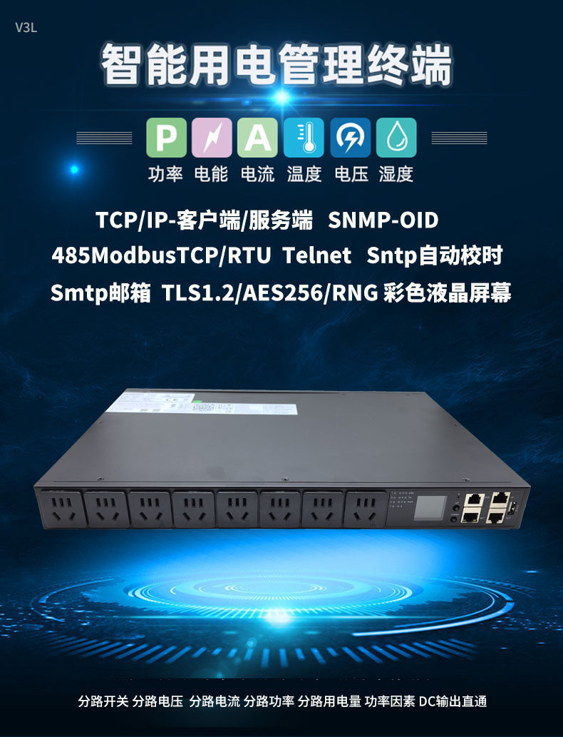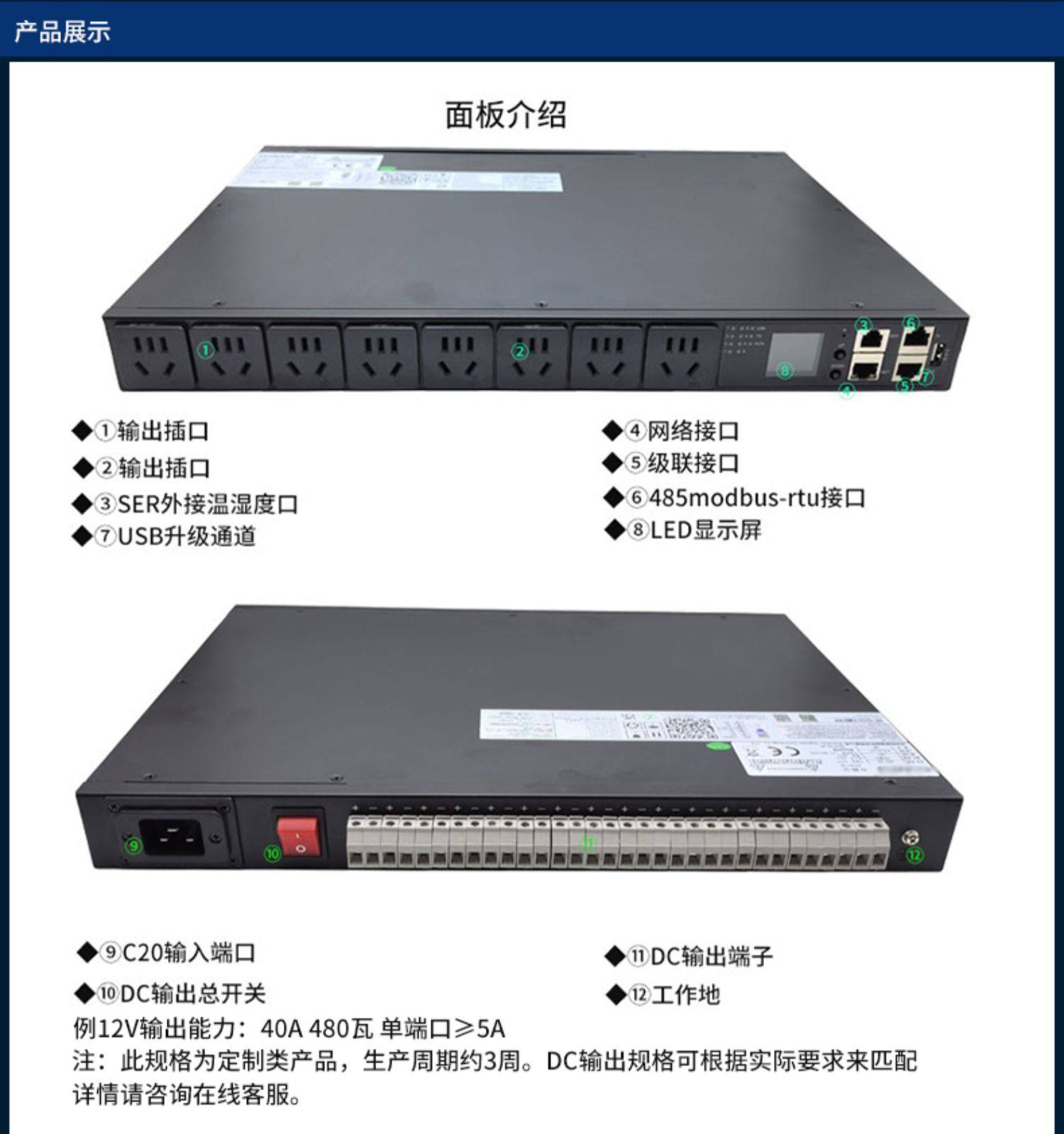 智能PDU机架式插座8路交流输出+DC直流输出 snmp modbus TCP协议