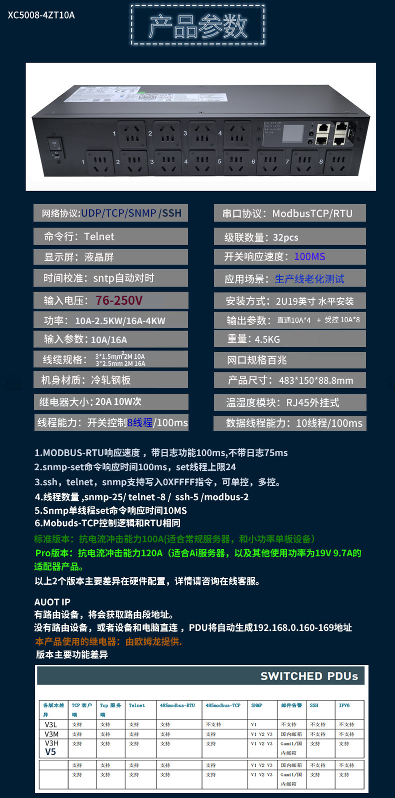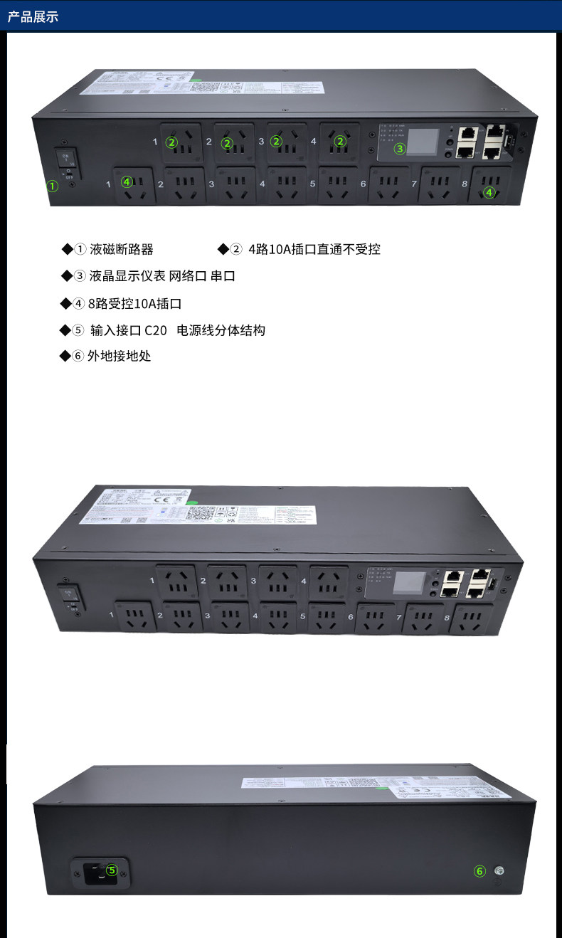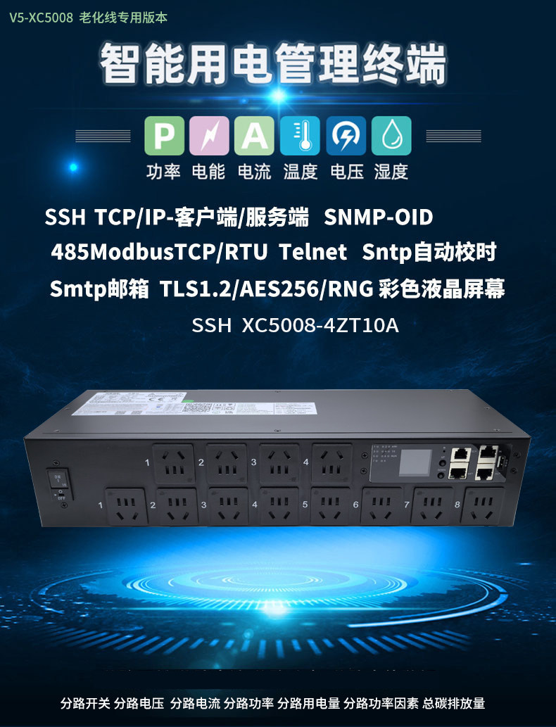 老化线跑脚本抗大电流冲击智能pdu插座 snmp 协议 8路受控4路直通