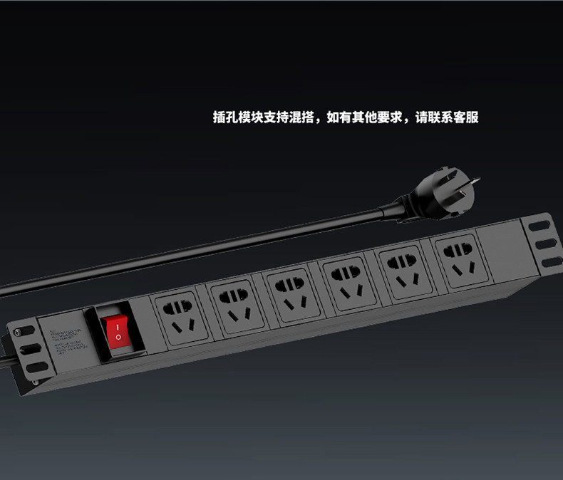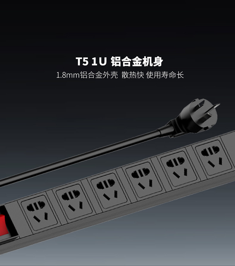PDU机柜电源插座10A6位1U19英寸铝合金带开关排插接线板
