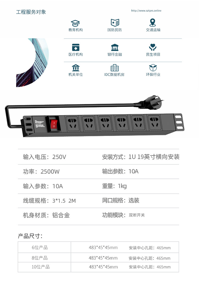 PDU机柜电源插座13A1U19英寸8位铝合金排插接线板排插