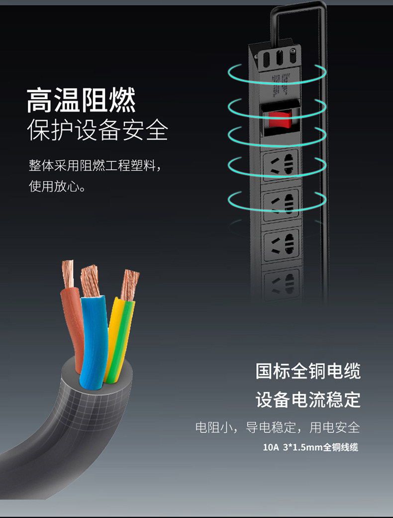 1、高温阻燃保护设备安全,整体采用阻燃工程塑料,使用放心。