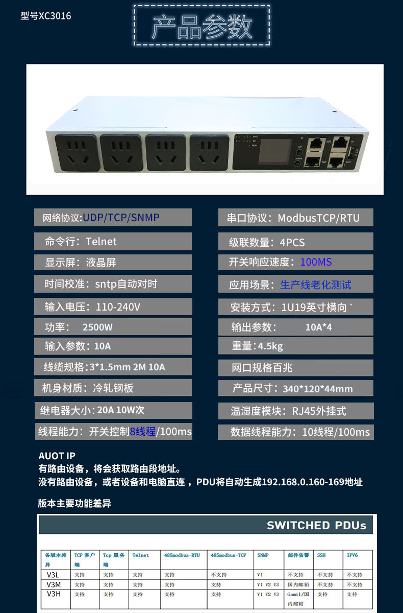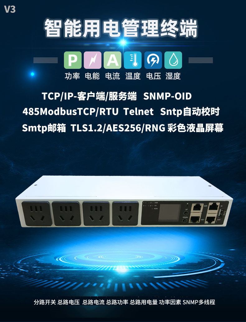 4位10A分控 SNMP 485modbus-Tcp RTU 多线程网管智能PDU电源插座